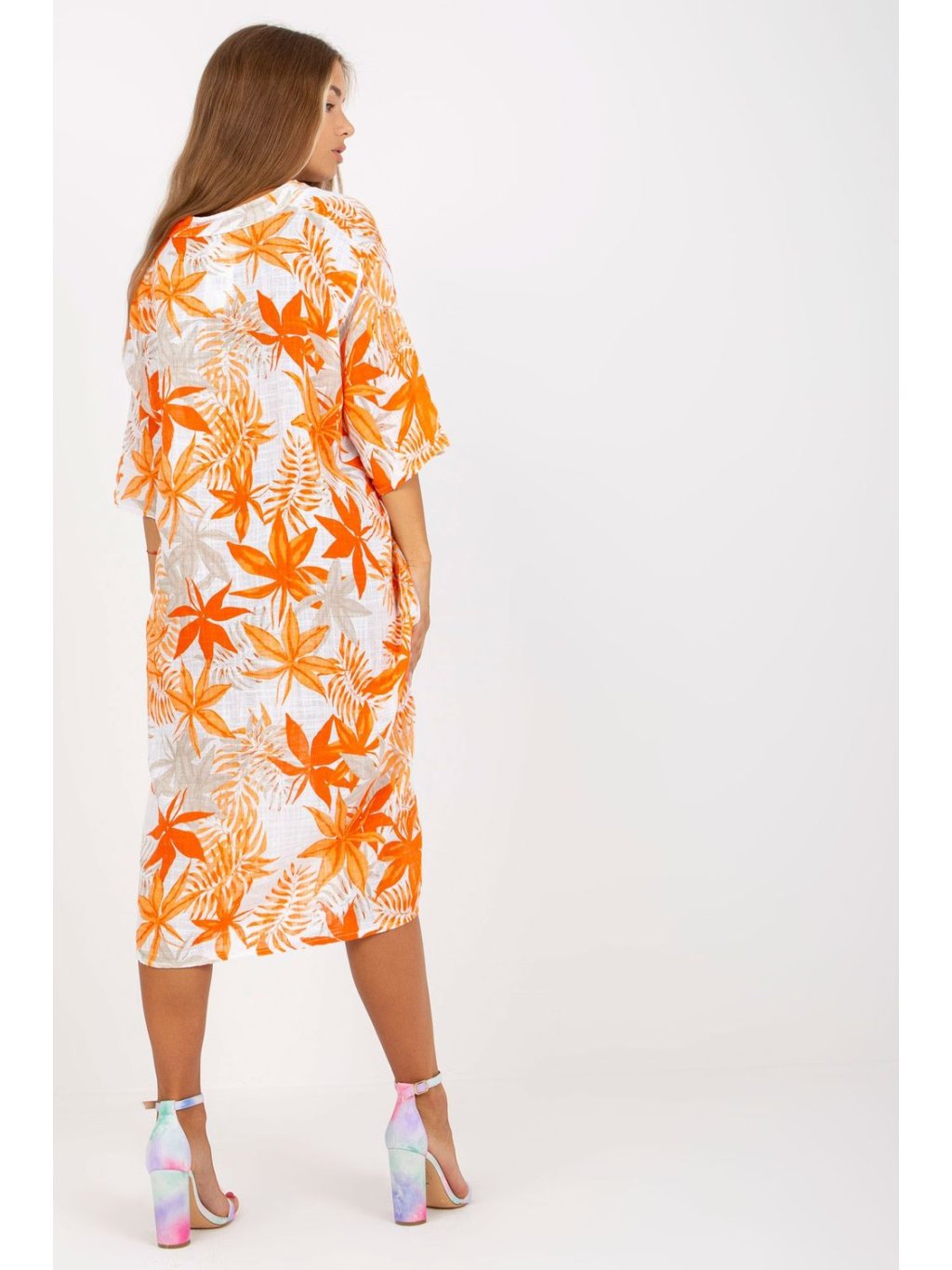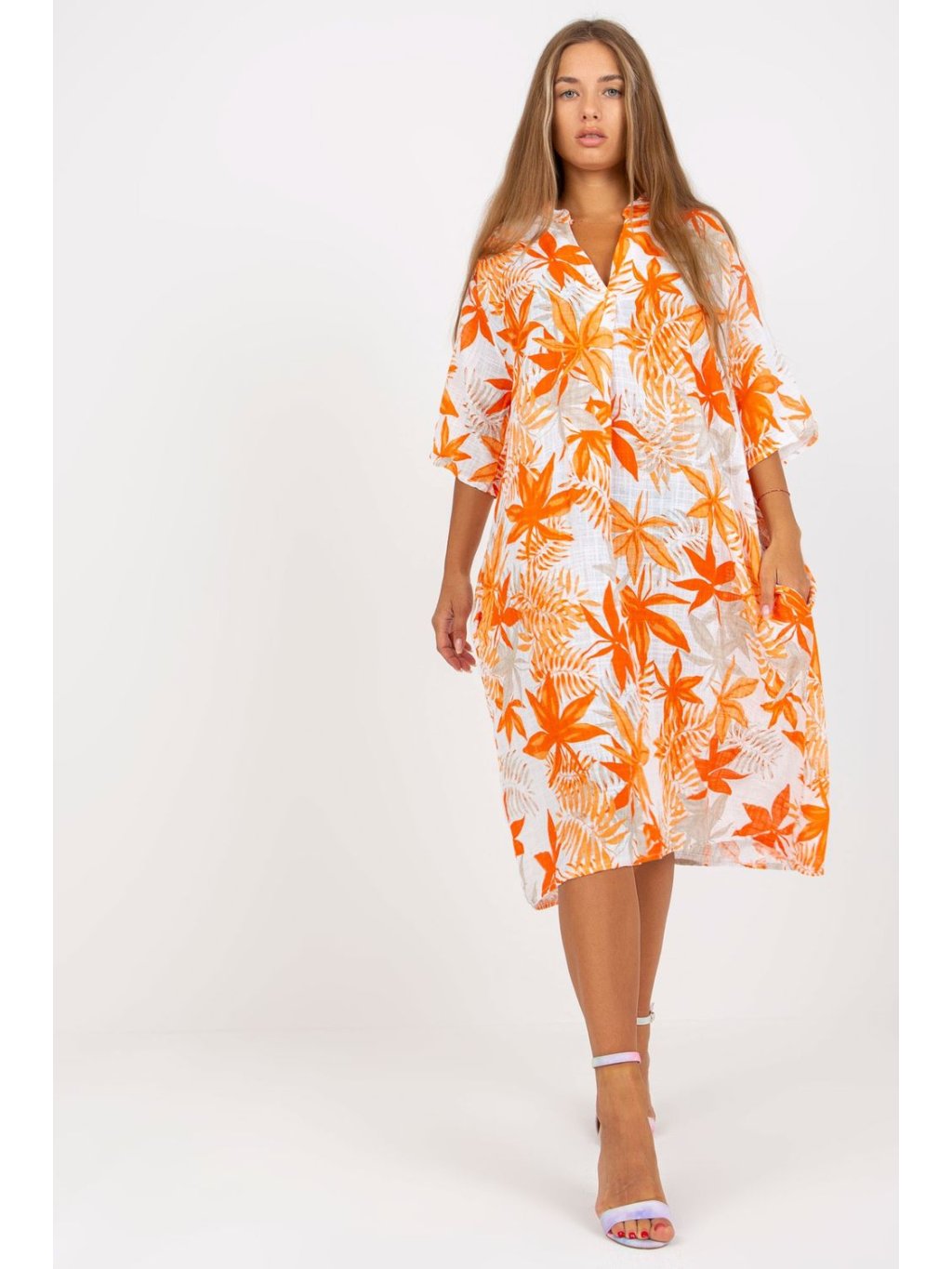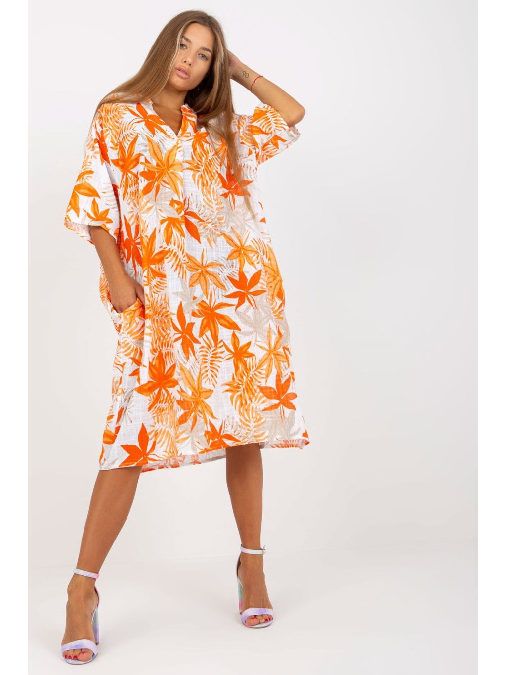 Letní šaty volného střihu s 3/4 rukávy a výstřihem do V. Kapsy na bocích.