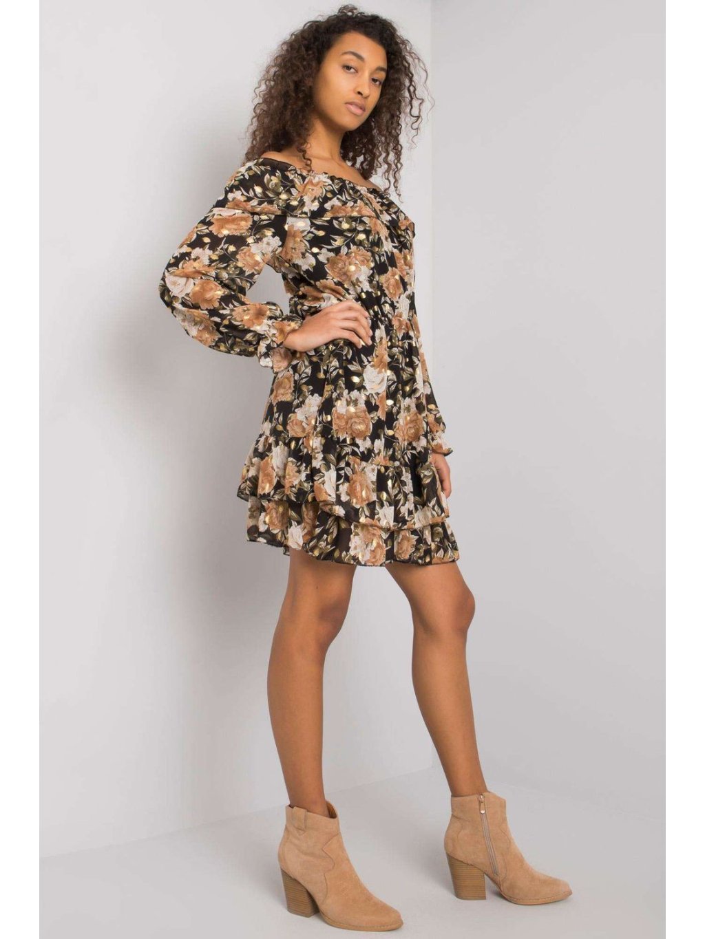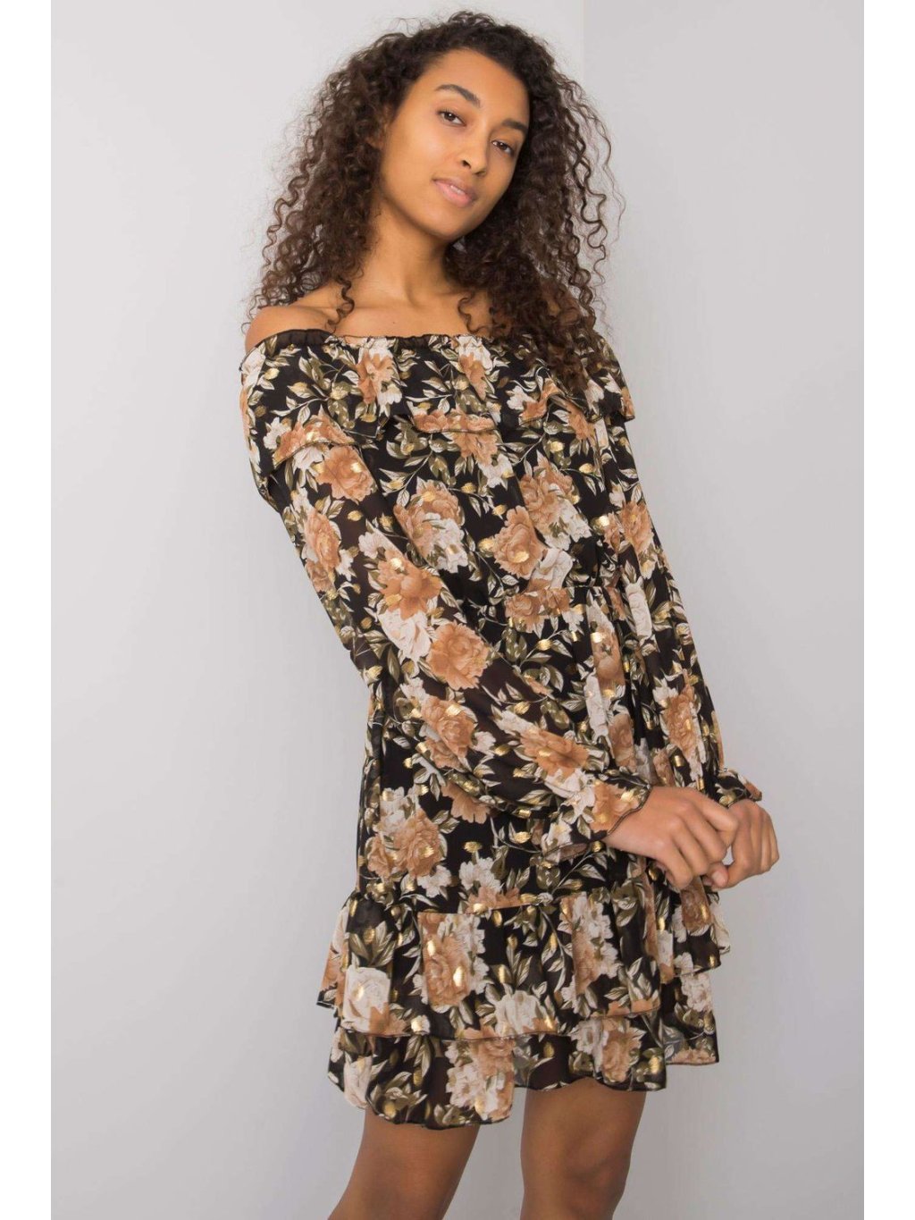 Šaty s dlouhými rukávy a výstřihem španělského typu. Šaty mají podšívku, spodní část je zdobená volánky.