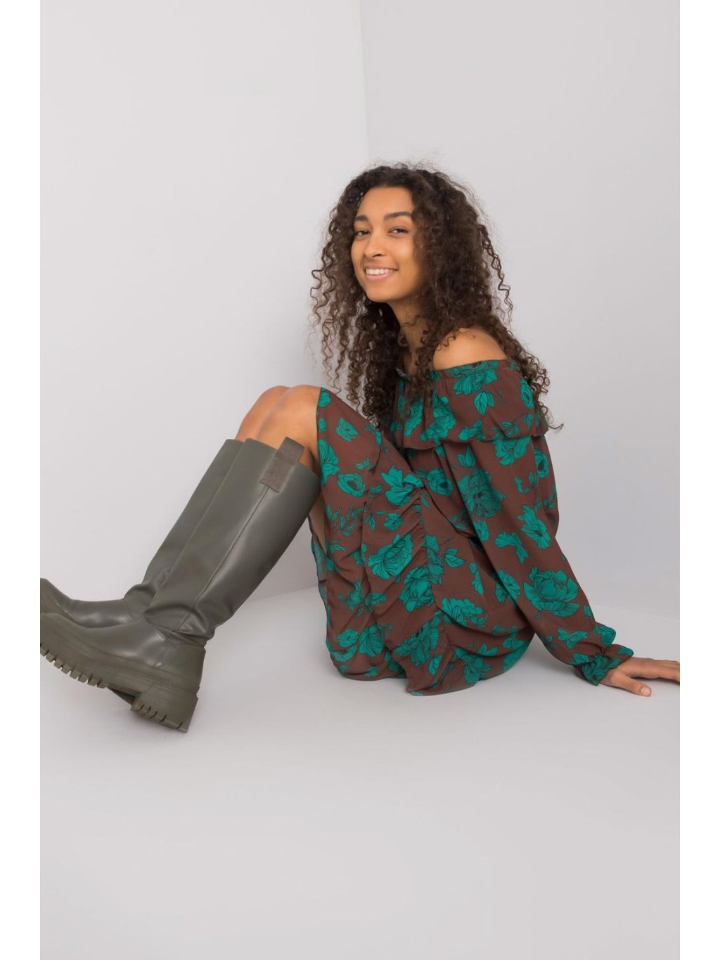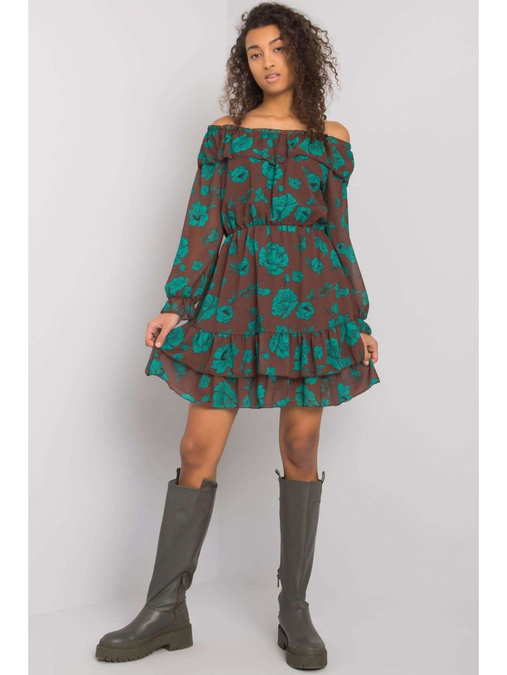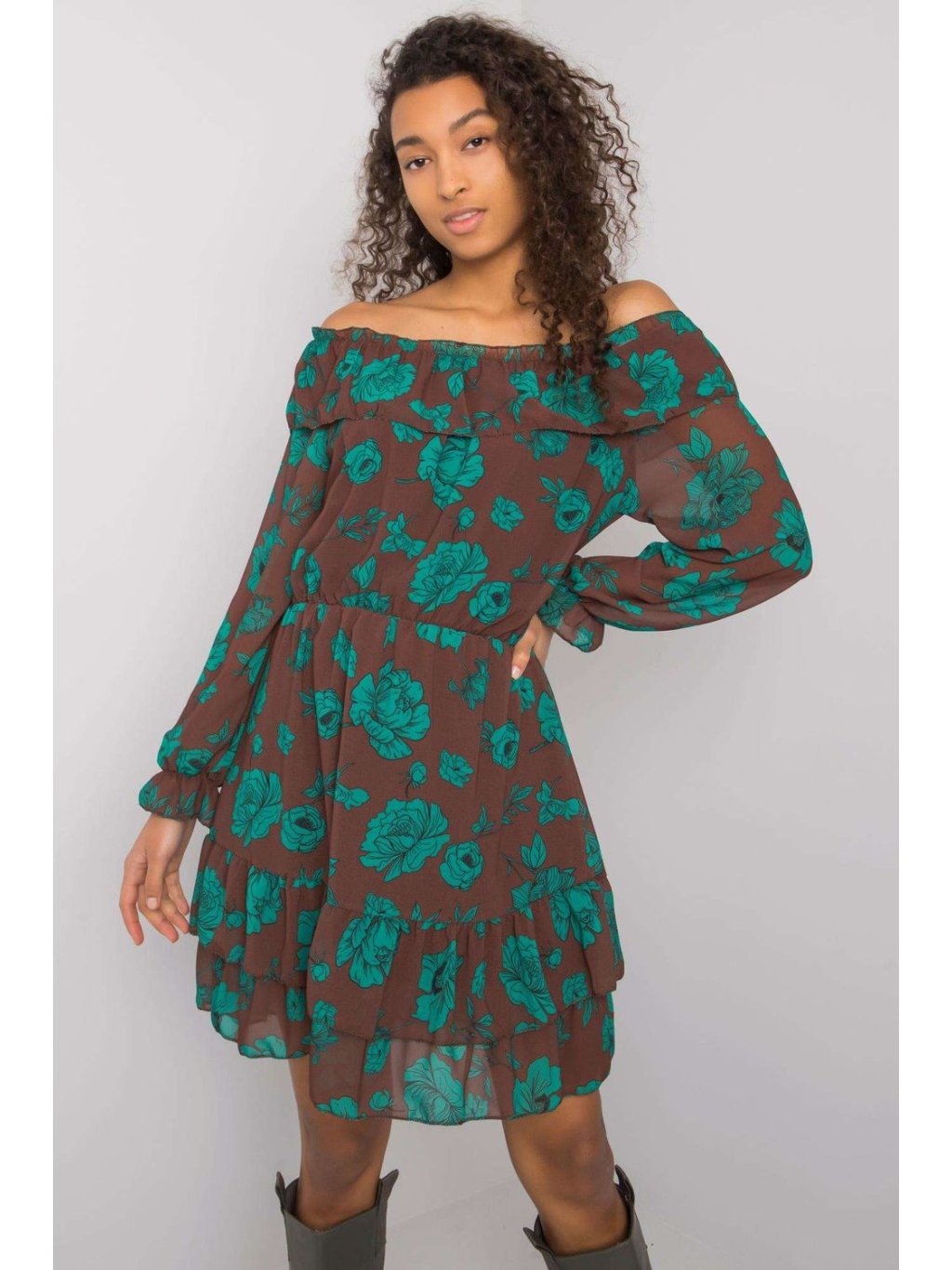 Šaty s dlouhými rukávy a výstřihem španělského typu. Šaty mají podšívku, spodní část zdobenou volánky.