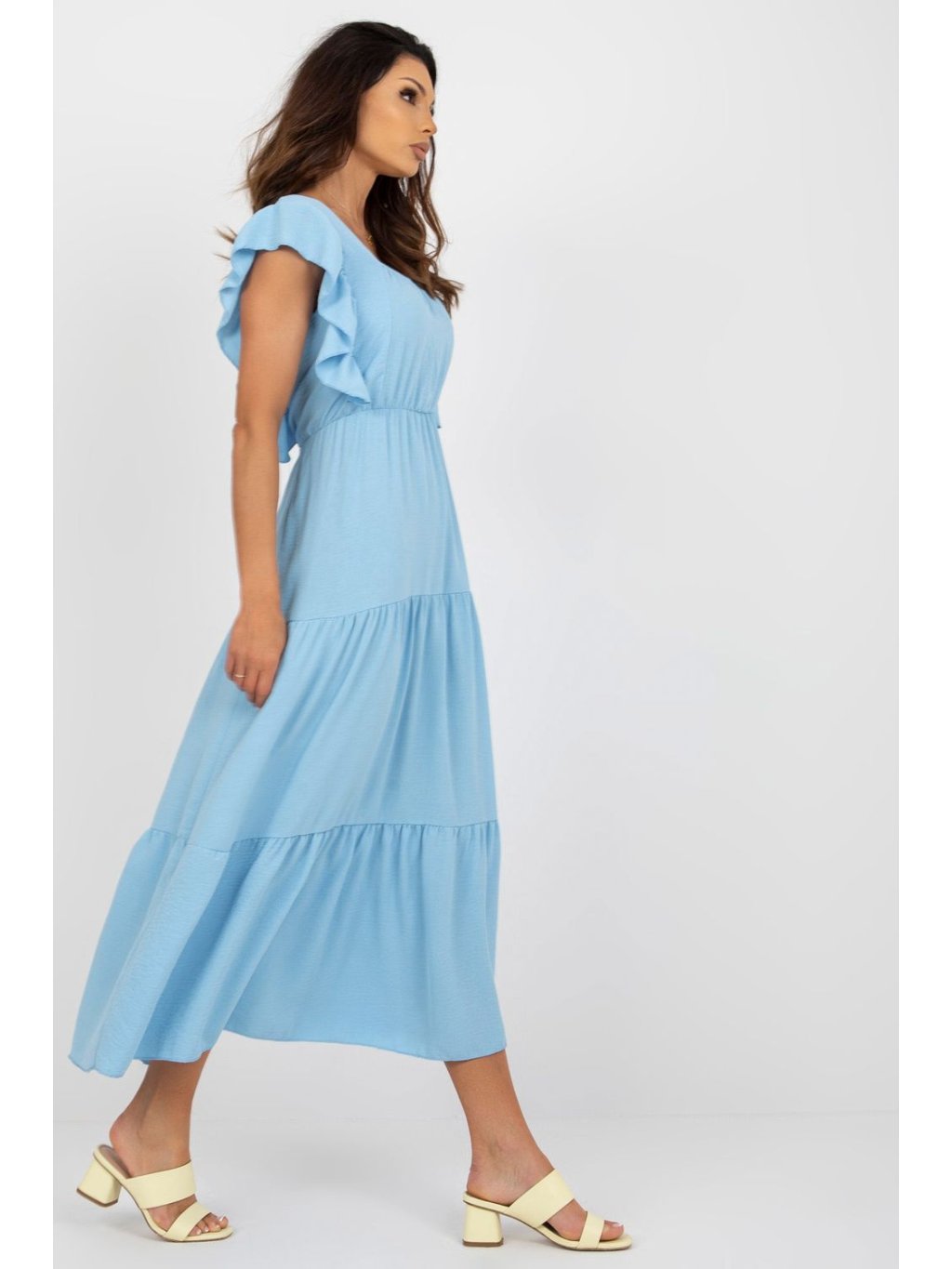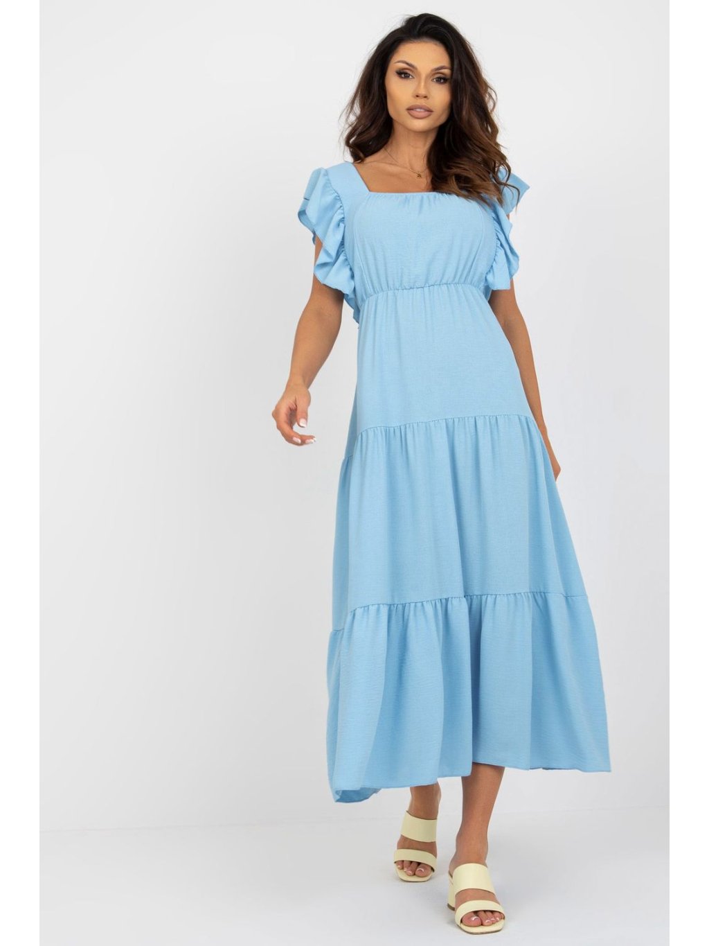 Dlouhé letní šaty volného střihu, bez rukávů a se čtvercovým výstřihem. Návrh ideální pro mnoho příležitostí.