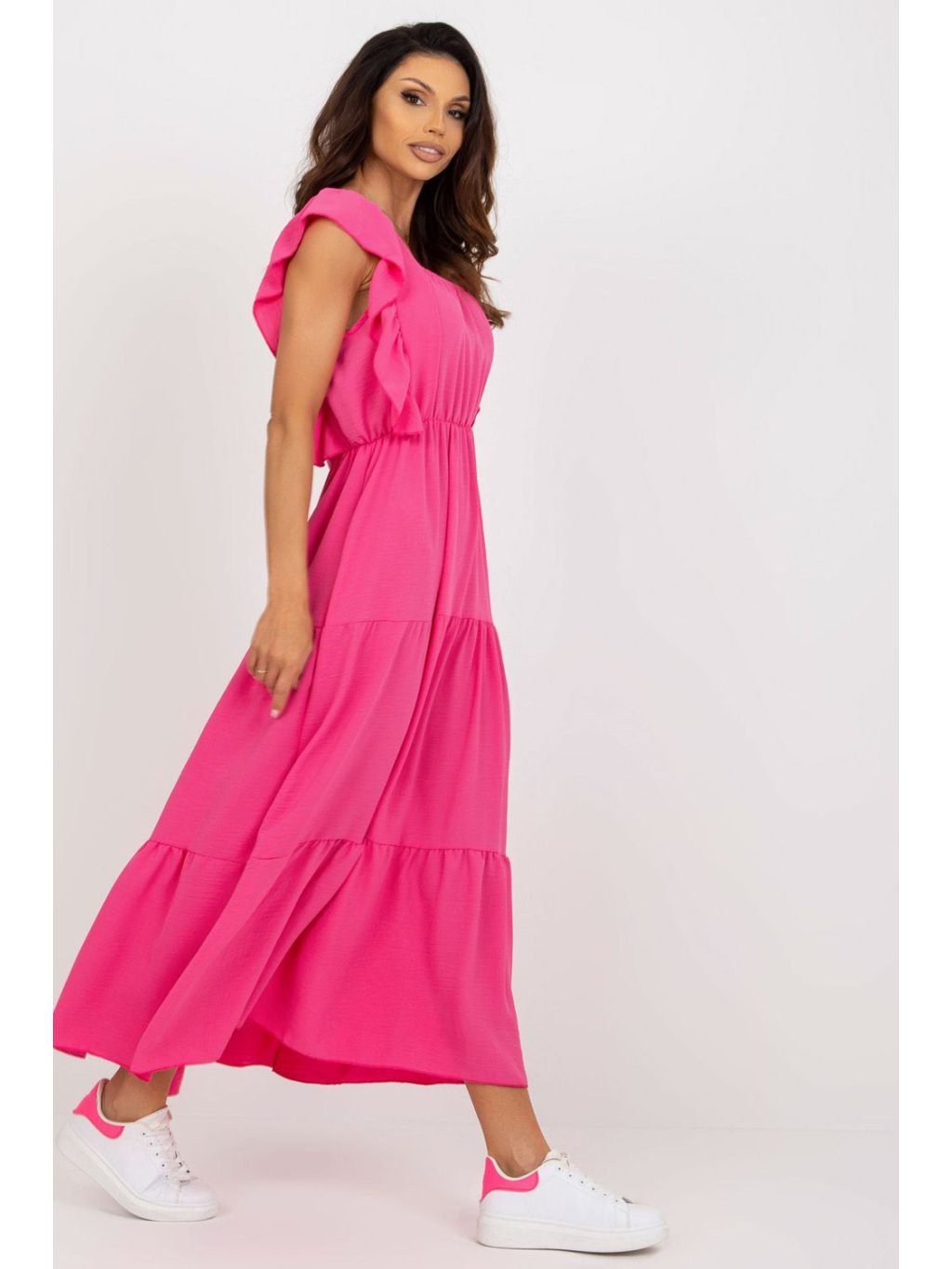 Dlouhé letní šaty volného střihu, bez rukávů a se čtvercovým výstřihem. Návrh ideální pro mnoho příležitostí.