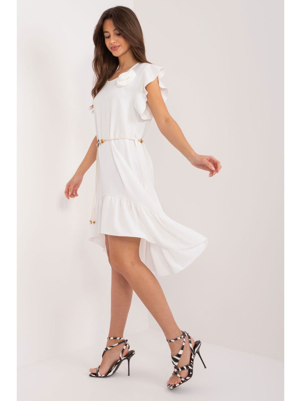 Každodenní letní šaty, které dokonale podtrhnou váš ženský půvab a zajistí každodenní pohodlí. Tento model je vyroben z hladkého polyesteru a je ideální volbou pro teplé dny, protože poskytuje volnost pohybu a lehké nošení. Díky rozšířenému střihu působí šaty lehkým a vzdušným dojmem, takže každý pohyb bude obzvlášť jemným tancem. Asymetrický střih, kdy je zadní část šatů o něco delší, dodává šatům jedinečný charakter a eleganci. Šaty mají krátké rukávy v podobě volánku, které dodávají jemnost a dívčí půvab. Kulatý výstřih je univerzální a skvěle se kombinuje s různými doplňky. Jsou vybaveny páskem na zavazování, který zvýrazňuje pas a dodává šatům jedinečný půvab. Ve spodní části šatů je navíc umístěn volán, který dodává šatům jemnost a lehkost. Délka šatů sahá před kolena, takže jsou ideální volbou pro různé příležitosti, od setkání s přáteli až po každodenní povinnosti. Díky své jednoduchosti a eleganci se šaty jistě stanou oblíbeným kouskem vašeho šatníku pro letní dny.