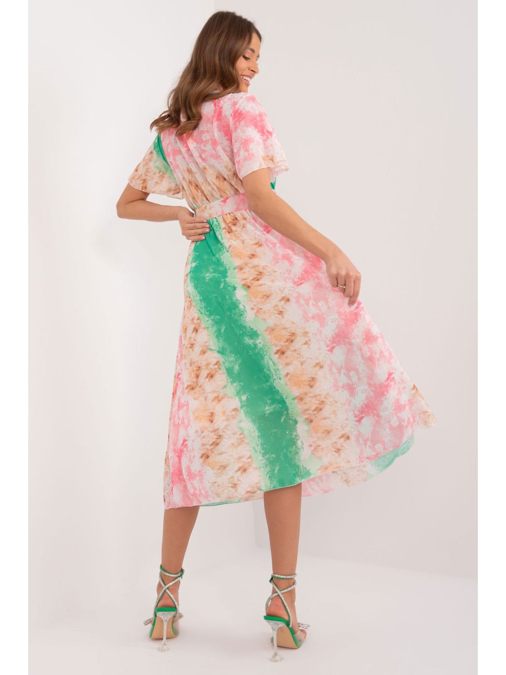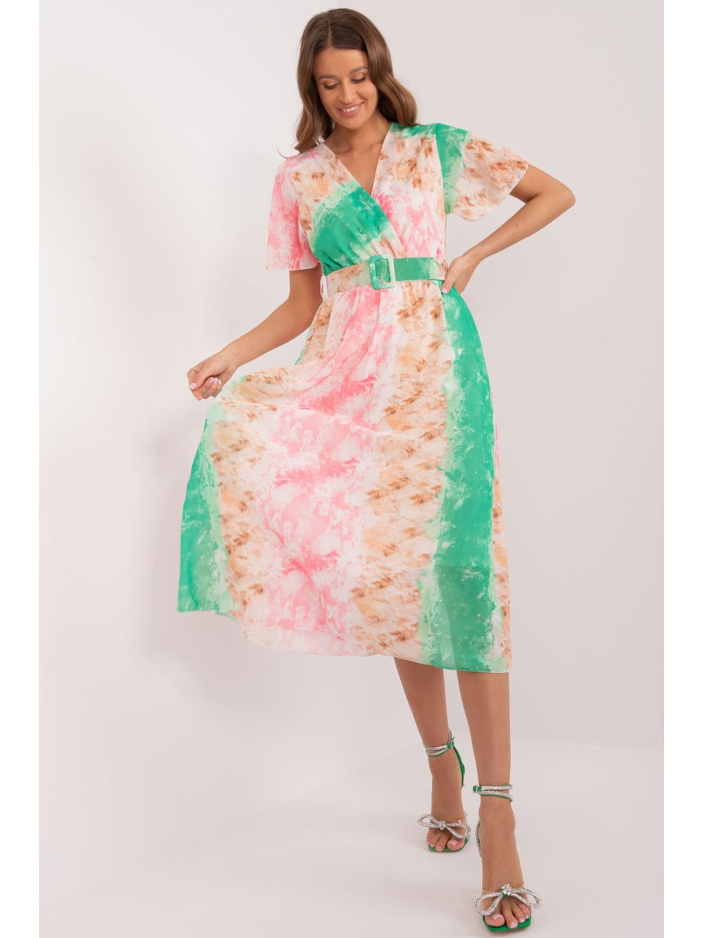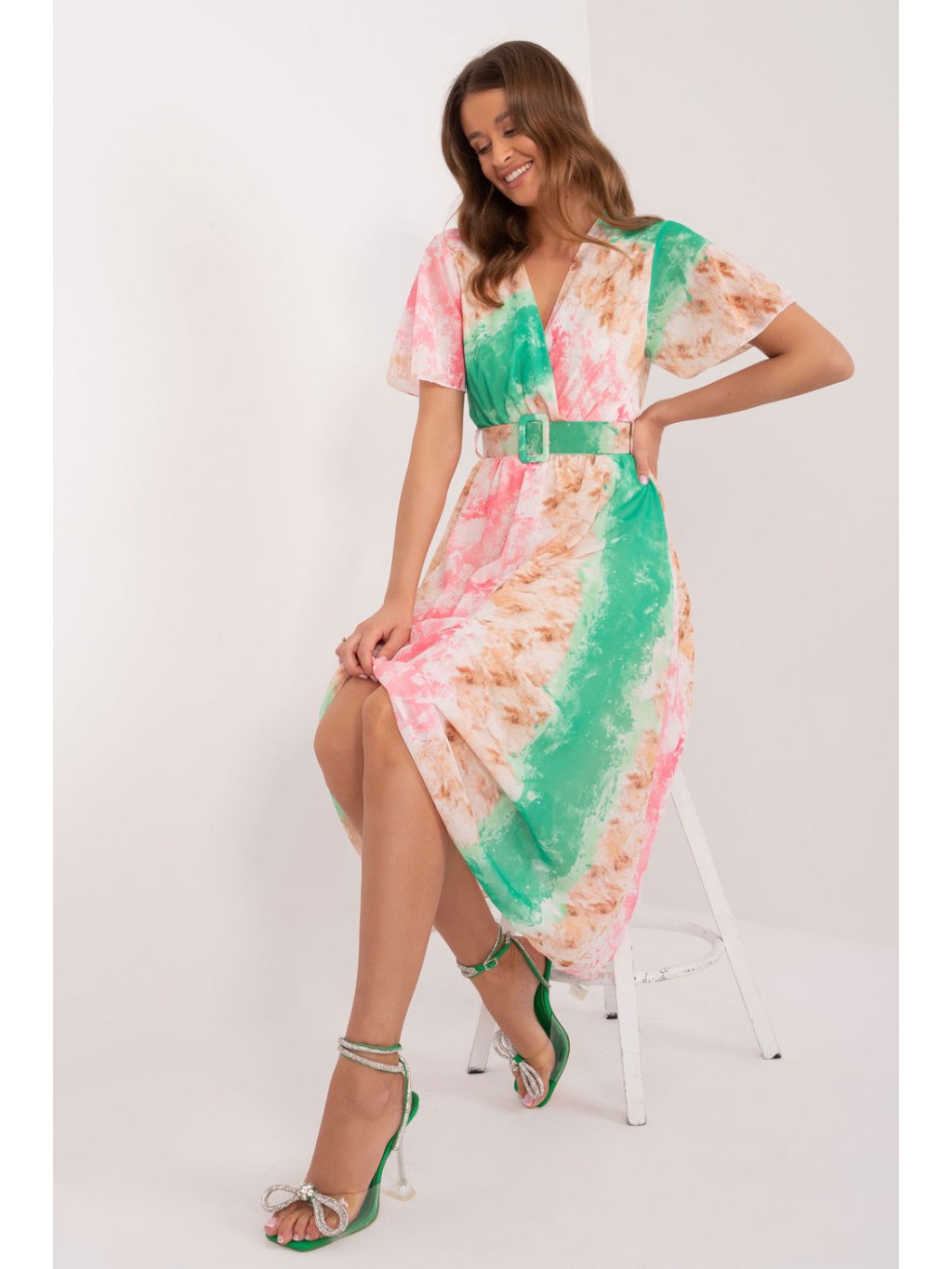 Tyto šaty jsou ideální volbou pro každodenní nošení a kombinují pohodlí s osobitým stylem. Jsou vyrobeny z látky zdobené barevným potiskem a dodají každému kompletu svěžest a energii. Krátké rukávy poskytují volnost pohybu a midi délka dodává šatům univerzální charakter, který se skvěle hodí pro různé příležitosti. Jako každodenní šaty byly navrženy s ohledem na pohodlí a funkčnost. Jsou vybaveny páskem se zapínáním na přezku, který zvýrazňuje pas a dodává siluetě ženský tvar. Šaty jsou navíc podšité pro větší pohodlí a lepší padnutí. Díky rovnému střihu se snadno stylizují a hodí se jak pro běžné, tak pro formálnější příležitosti. Tyto šaty se skvěle hodí na setkání s přáteli, na nákupy nebo na procházku a díky nim bude každý den plný stylu a sebevědomí.