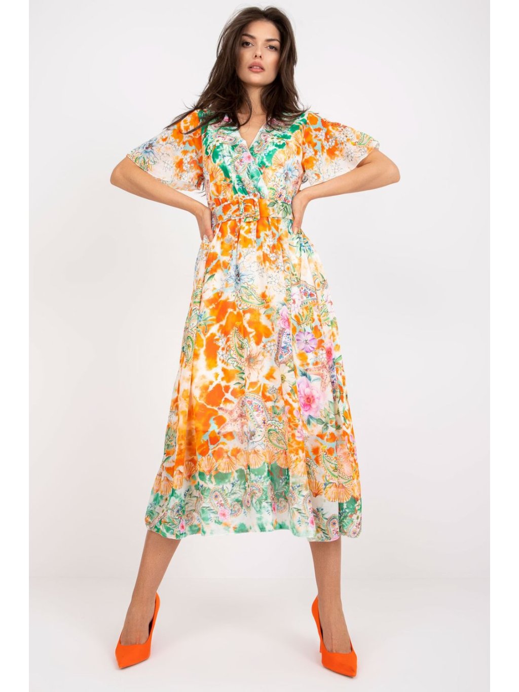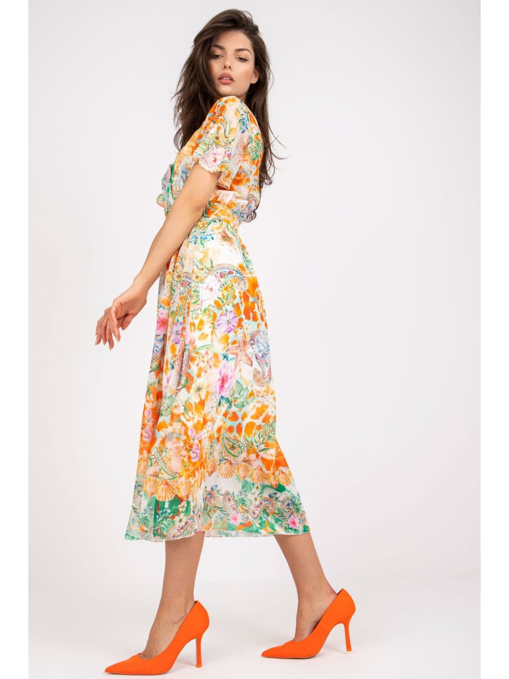 Tyto šaty jsou typickým příkladem každodenní elegance, která v sobě spojuje pohodlí a styl. Díky barevnému potisku dodávají šatům zábavný a energický nádech a skvěle se hodí pro každou příležitost. Díky rozšířenému střihu jsou mimořádně ženské a hodí se na společenské akce i do práce. Šaty jsou vyrobeny z polyesteru, snadno se udržují a ošetřují, přičemž si dlouho zachovávají dokonalý vzhled. Jejich midi délka jim dodává univerzální charakter, který lze snadno přizpůsobit různým příležitostem. Krátké rukávy a obálkový výstřih dodávají šatům jemnost a ženskou eleganci a zdůrazňují jemnost siluety. Šaty jsou navíc podšité pro větší pohodlí a lepší padnutí. Pro zvýraznění pasu a dodání většího šmrncu je součástí šatů pásek v barvě potisku. Díky kombinaci stylu, pohodlí a funkčnosti se tyto šaty stanou nepostradatelným kouskem šatníku, díky kterému bude každý den plný sebevědomí a elegance.