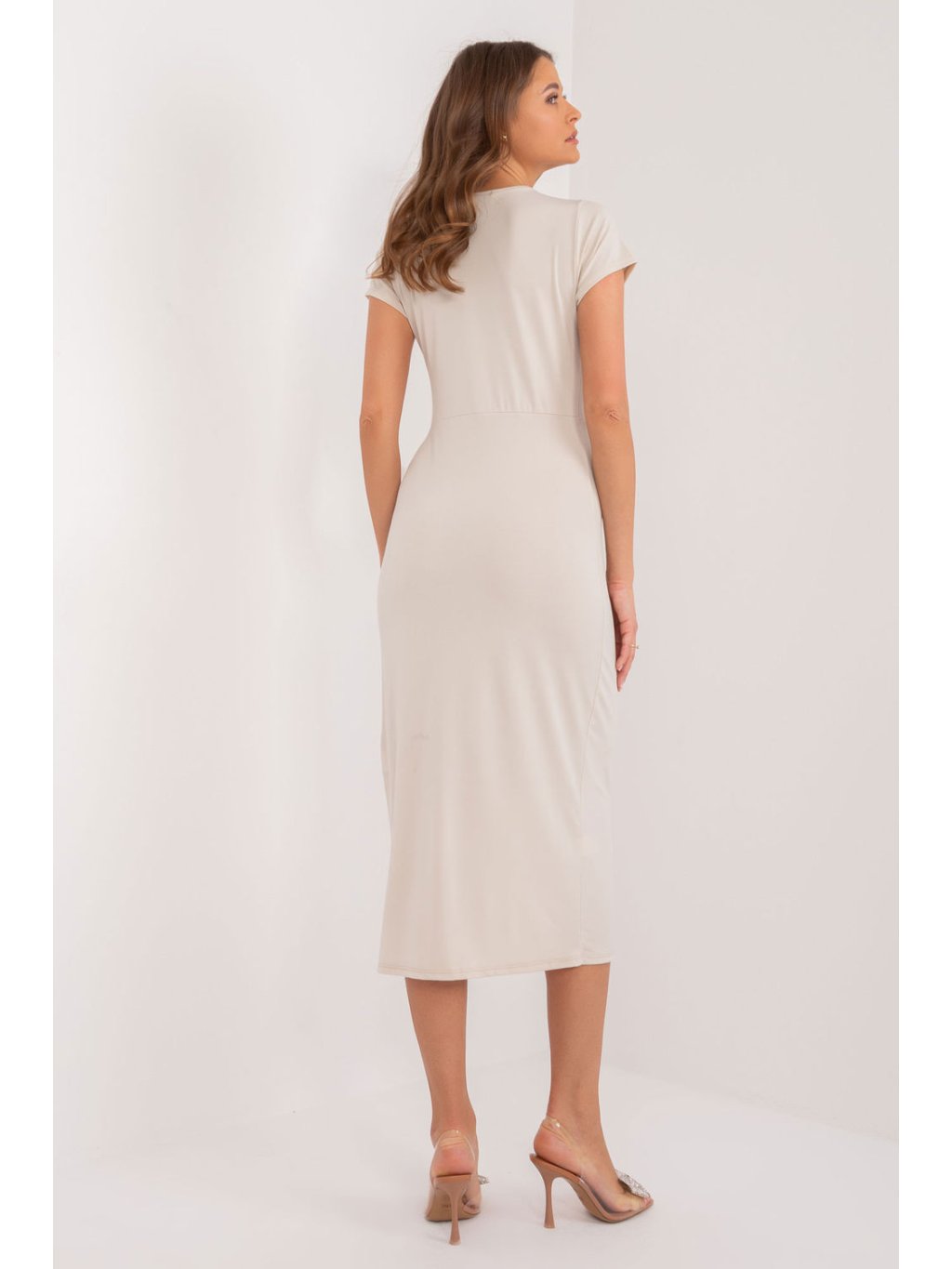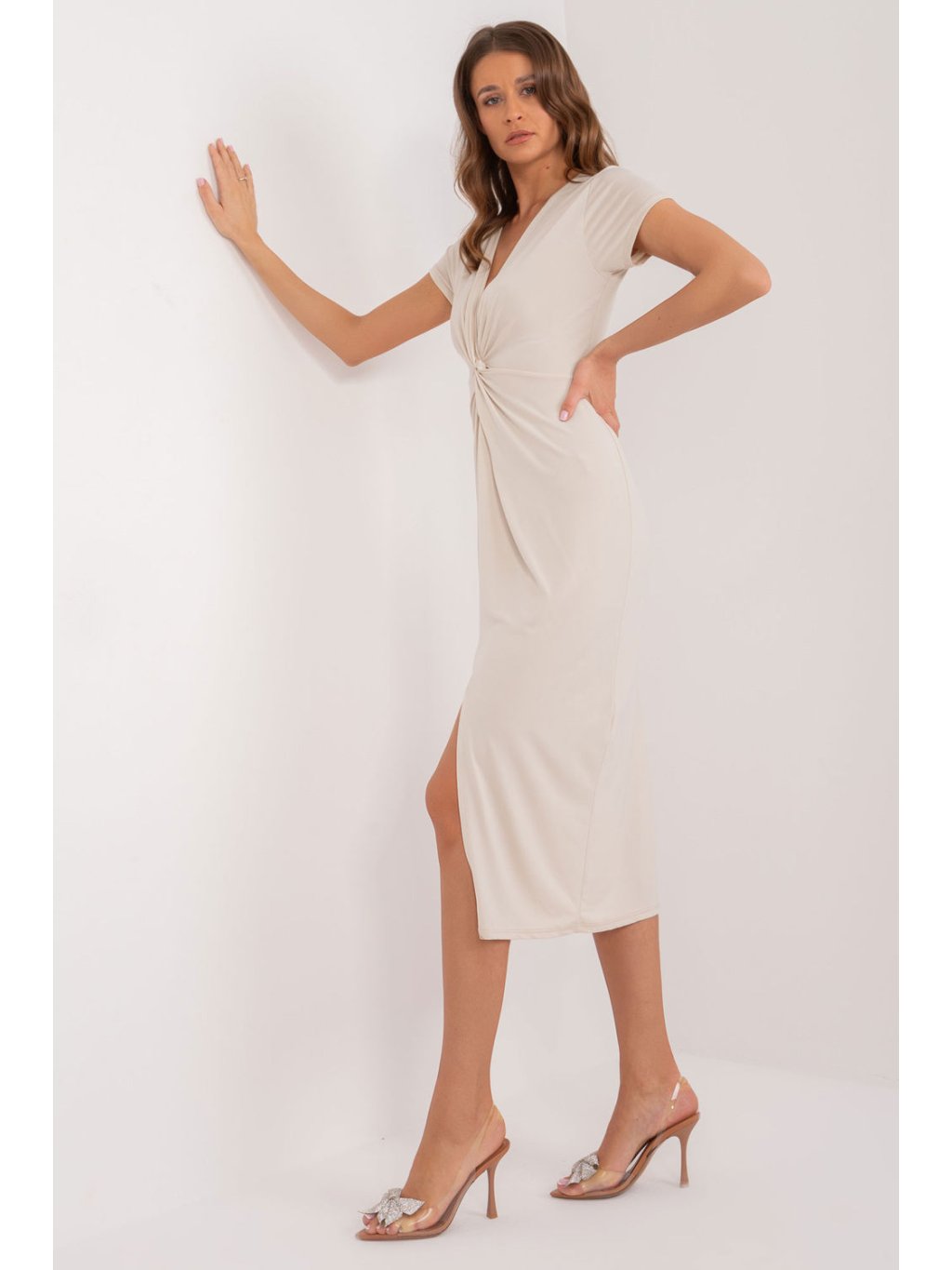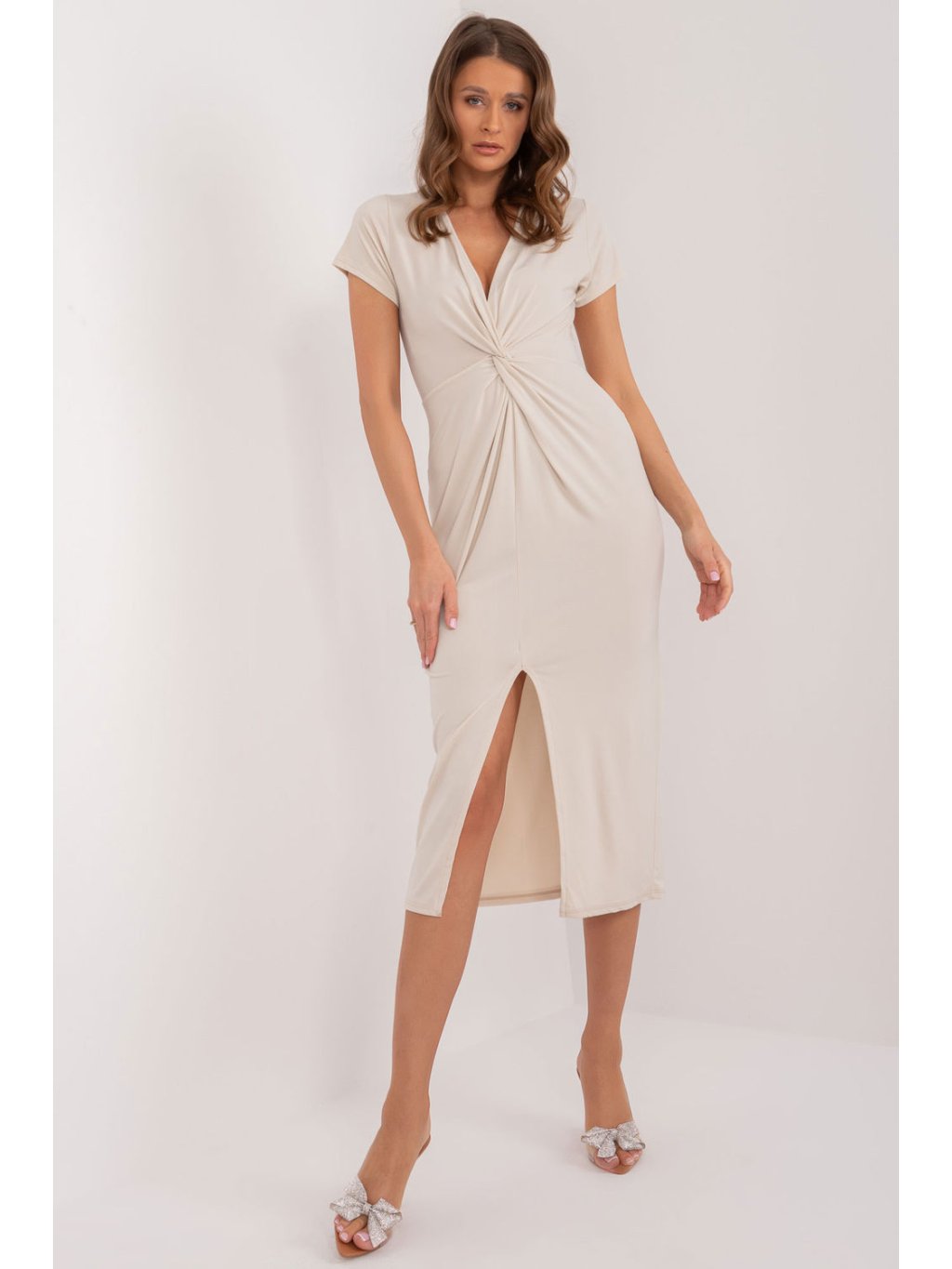 Tyto šaty jsou kombinací elegance a pohodlí, ideální pro každodenní nošení. Jsou vyrobeny z hladké tkaniny, která jemně sedí na těle, a působí stylově a moderně. Jejich přední díl zdobí nápadné řasení, které jim dodává jemnost a ženský půvab a zároveň zakrývá případné nedokonalosti. Krátké rukávy a výstřih do V zdůrazňují jemnou siluetu a dodávají šatům eleganci a jemnost. Midi délka jim dodává univerzální charakter, díky němuž se hodí pro různé příležitosti. Tužkové šaty jsou klasikou, která vždy vypadá stylově a elegantně. Jejich vypasovaný střih zvýrazňuje ženské křivky a dodává jim sebejistotu a šik. Rozparky ve spodní části šatů navíc dodávají šatům lehkost a dynamiku. Šaty jsou vyrobeny převážně z polyesteru, takže se snadno udržují a ošetřují, přičemž si zachovávají skvělý vzhled po dlouhou dobu. Díky této kombinaci stylu, pohodlí a funkčnosti se tyto šaty stanou nezbytným kouskem šatníku, díky kterému bude každý den plný sebevědomí a elegance.
