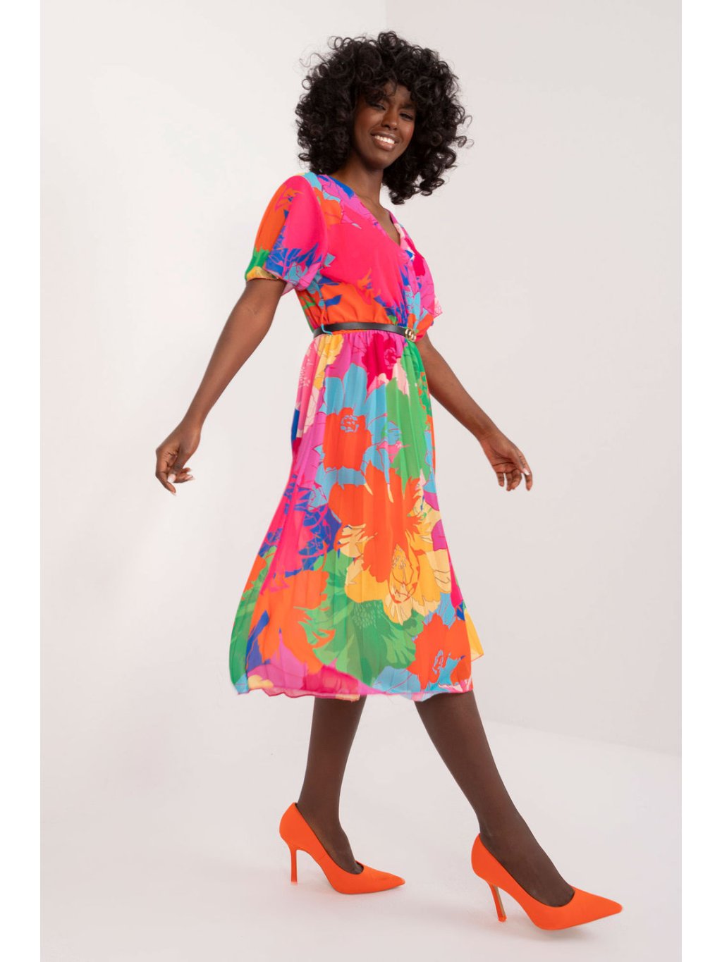 Tyto šaty jsou typickým příkladem každodenní elegance, která ozvláštní každý den. Jejich rozšířený střih poskytuje volnost pohybu a zároveň zvýrazňuje ženskou siluetu. Spodní část šatů zdobí záhyby, které celému vzhledu dodávají lehkost a jemnost. Tyto šaty jsou vyrobeny z polyesteru, takže nejen skvěle vypadají, ale také se snadno udržují a příjemně nosí. Díky své midi délce se hodí pro mnoho příležitostí, od procházek po městě až po setkání s přáteli. Díky krátkým rukávům se šaty pohodlně nosí i v teplejších dnech, zatímco obálkový výstřih dodává šatům jemný půvab a ženský nádech. Šaty mají zapínání na pásek, který zvýrazňuje pas a dodává siluetě proporce. Díky podšívce pro větší pohodlí jsou tyto šaty kombinací stylu, pohodlí a elegance, díky níž se budete cítit sebevědomě a krásně každý den. Tyto šaty, které jsou ideální pro každodenní vycházky, se rychle stanou oblíbeným kouskem vašeho šatníku.