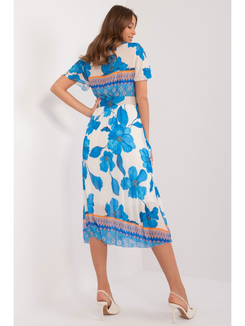 Letní šaty s krátkými rukávy v podobě volánků. Šaty s podšívkou. Obálkový výstřih, v pase zapínání na pásek, nařasený spodní lem. Ideální pro mnoho příležitostí.