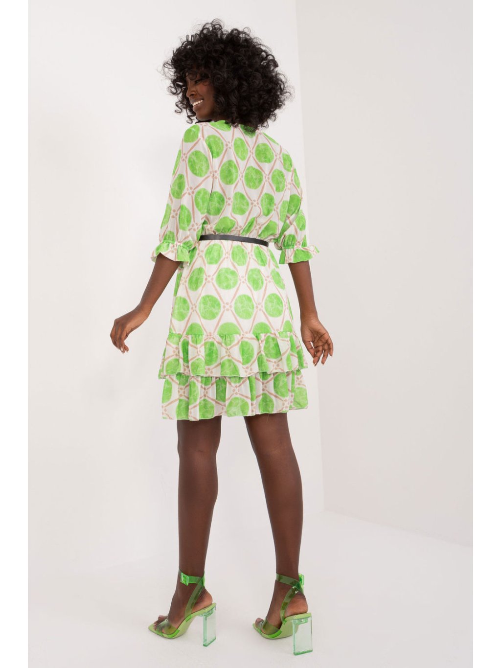 Tyto rozkošné šaty jsou ideální volbou pro každodenní nošení a dodají vašemu outfitu barevný šarm a zábavu. Barevný potisk jim dodává lehkost a letní nádech, ideální pro teplé dny. Obálkový výstřih dodává šatům eleganci a jemnost a zároveň jemně zdůrazňuje dekolt. Díky 3/4 rukávům jsou ideální volbou pro přechodná roční období, poskytují pohodlí a volnost pohybu. Šaty jsou rozšířené, což jim dodává lehkost a dívčí půvab a zároveň umožňuje volnost pohybu. Jejich mini délka je vhodná pro různé příležitosti, od procházek po městě až po setkání s přáteli. Šaty jsou vyrobeny převážně z polyesteru, snadno se čistí a jsou odolné, což zaručuje, že si jejich půvab budete moci užívat po mnoho dalších sezón. Šaty mají také pásek, který zvýrazňuje pas a dodává jim výraz, a volánky na spodním lemu, které jim dodávají jemnost a decentnost. Šaty mají navíc podšívku pro lepší přizpůsobení a pohodlné nošení. Díky svému letnímu charakteru a dívčímu střihu se tyto šaty stanou nepostradatelnou součástí vašeho každodenního šatníku a dodají zábavu a šarm každé situaci.