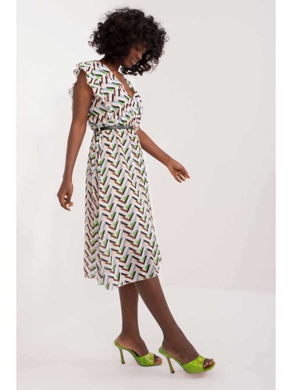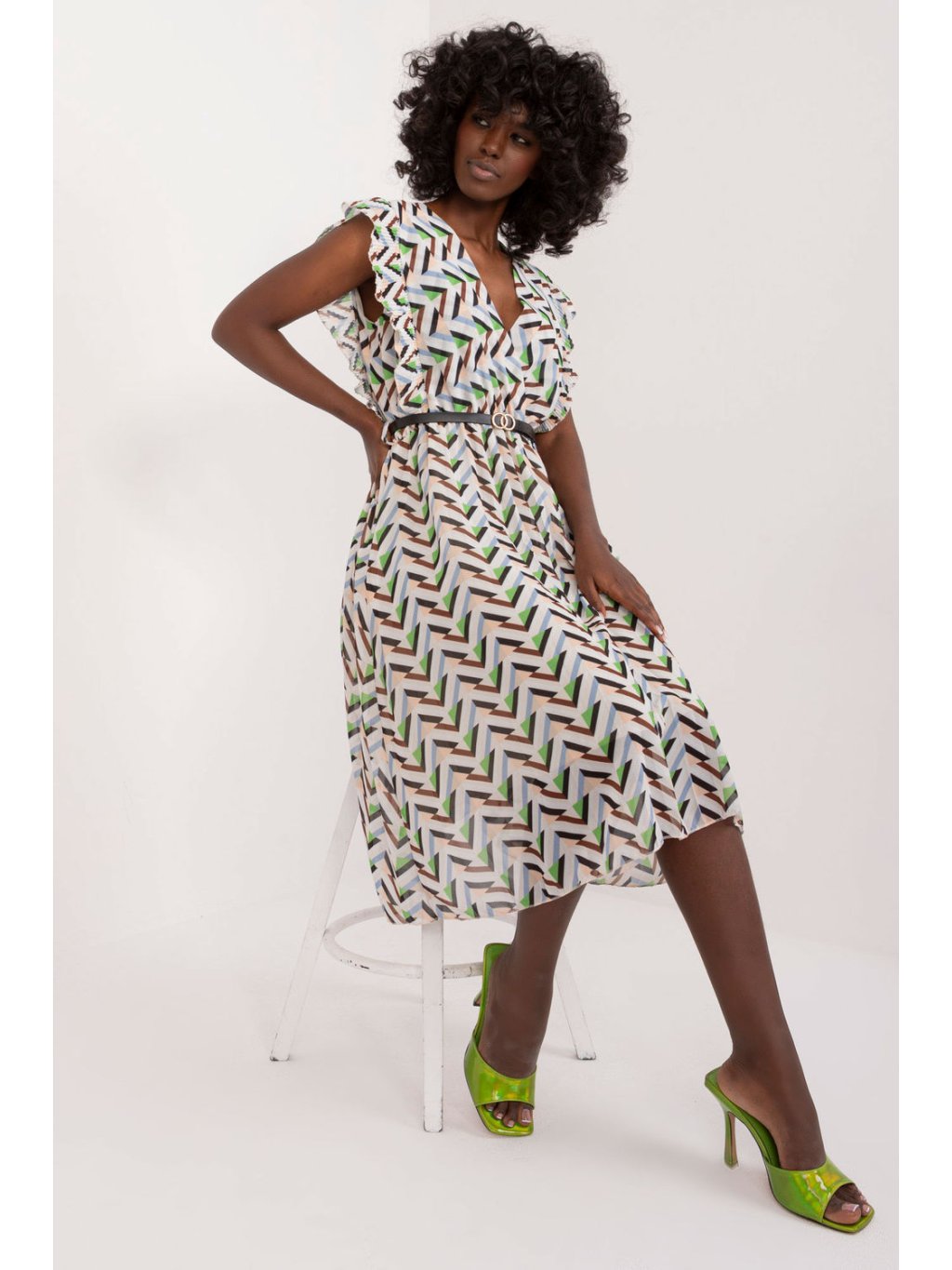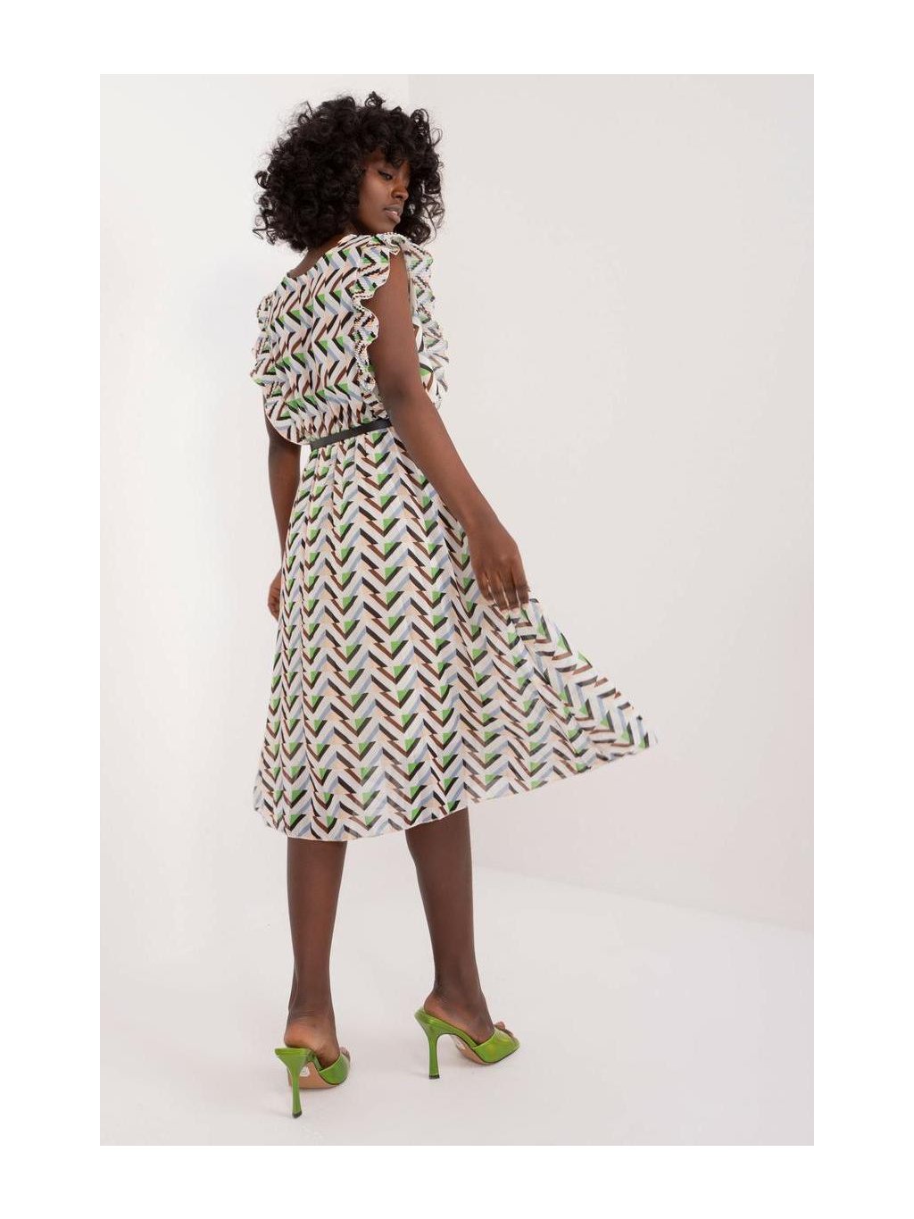 Plisované letní šaty s krátkými rukávy s volánkovým vzorem pro mnoho příležitostí. Šaty mají podšívku, pružný pas a srdíčkový výstřih. Kromě volánů jsou šaty s rozšířeným střihem doplněny páskem v pase.