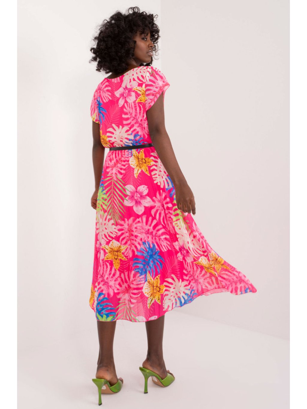 Letní šaty s krátkými rukávy, kulatým výstřihem a rozšířeným lemem. Šaty z barevné vzorované látky s podšívkou. Ideální pro mnoho příležitostí.