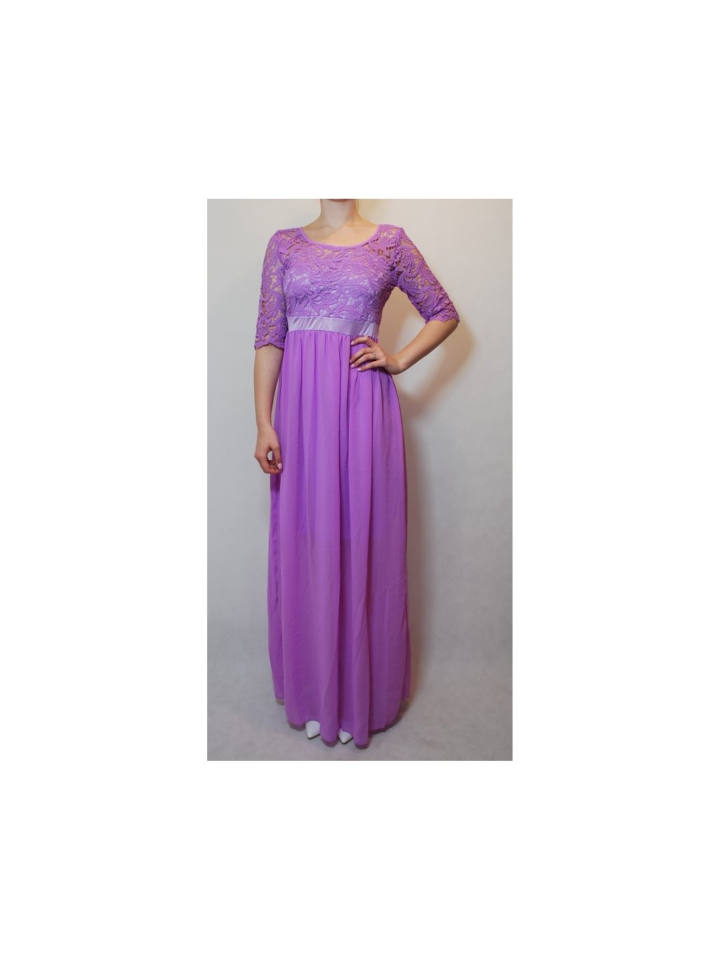 A Dlouhé šaty s krajkou fialkové 75-3
