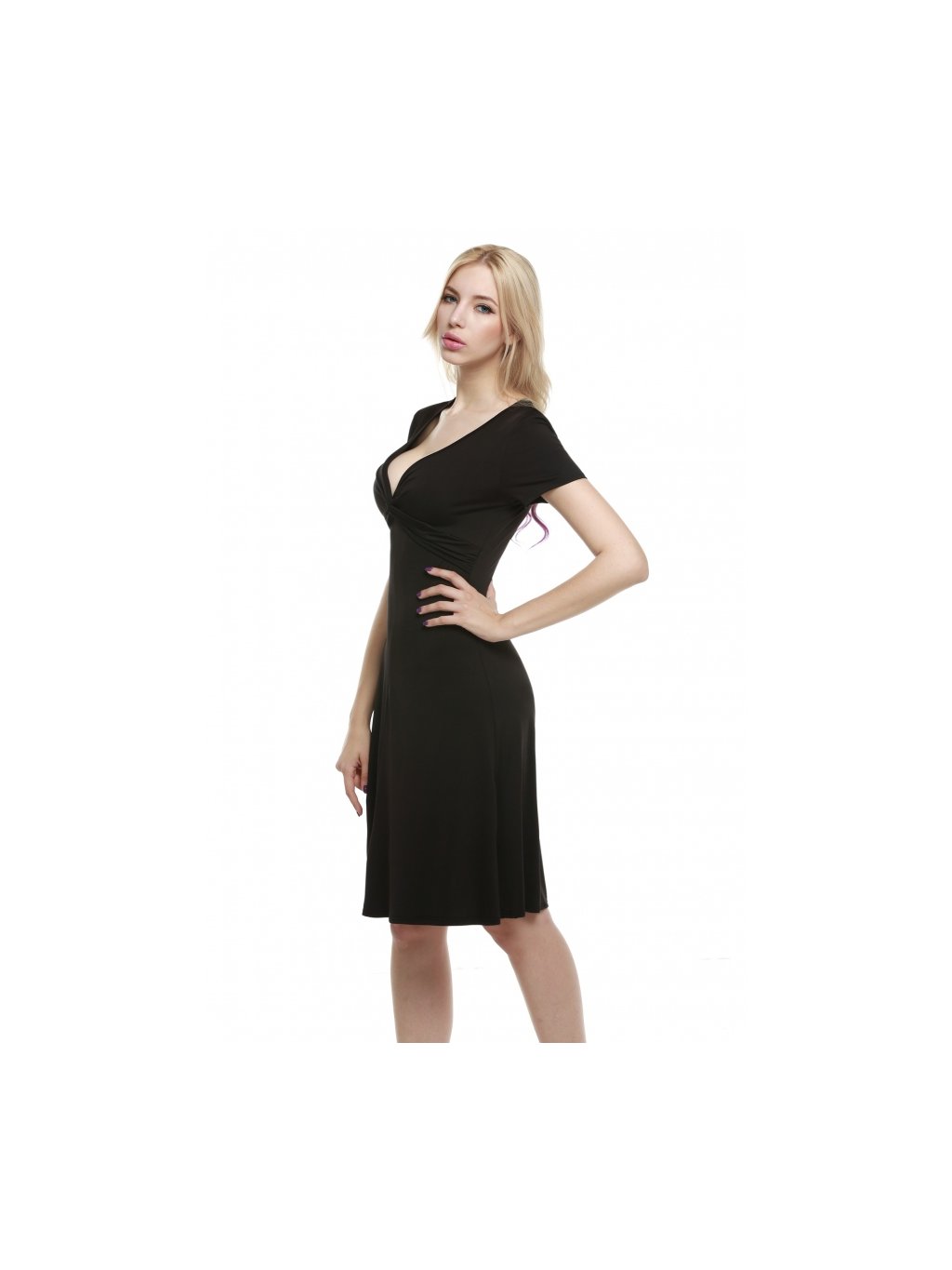 Elegantní černé šaty s pružného materiálu. S křížením na prsou a rukávky.