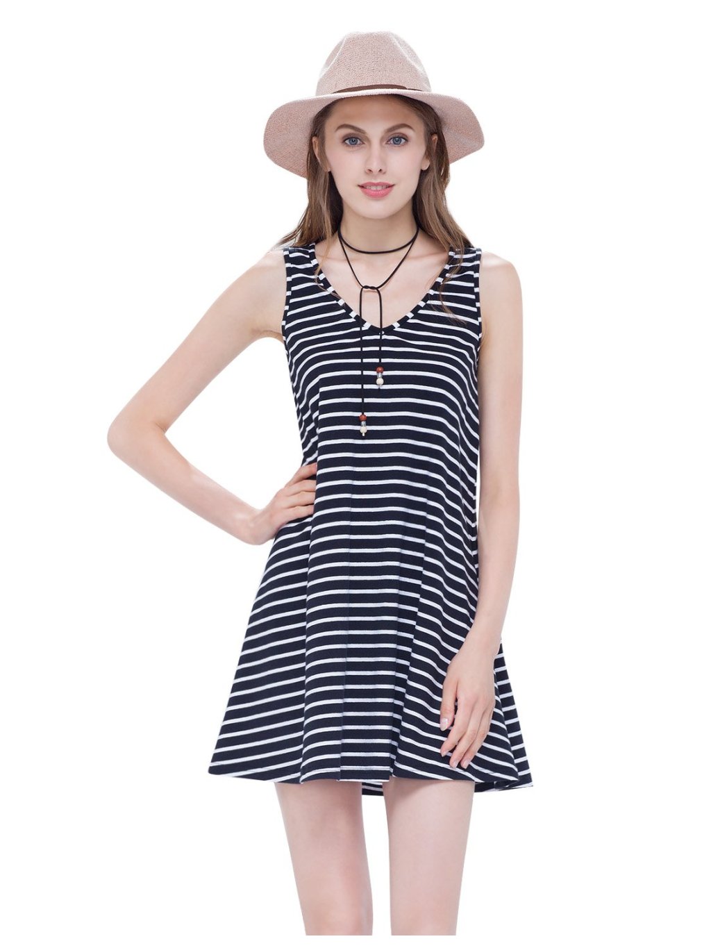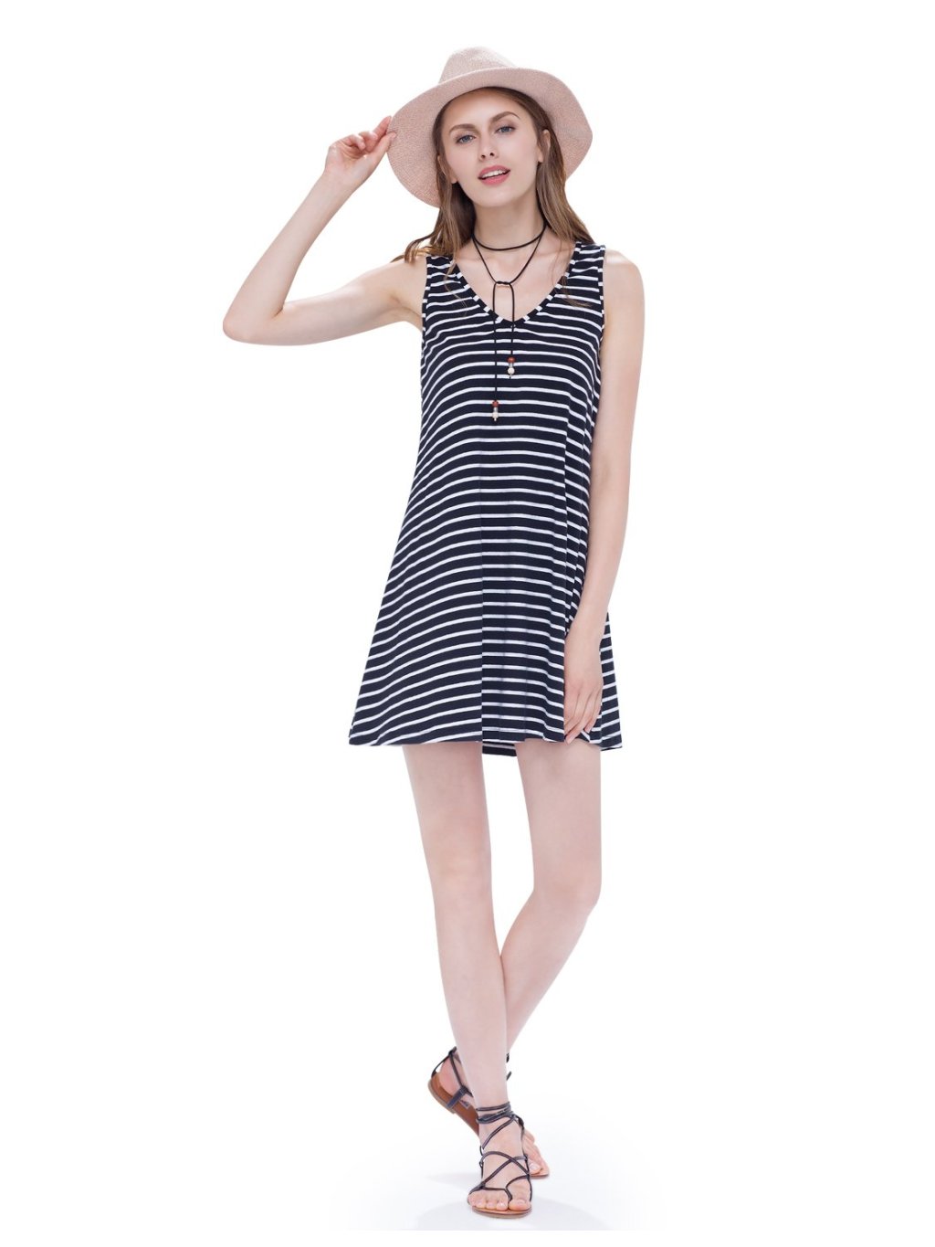 Pohodlné bavlněné šaty Ever Pretty. Pruhovaný vzor, véčkový výstřih, šaty jsou na široká ramínka.