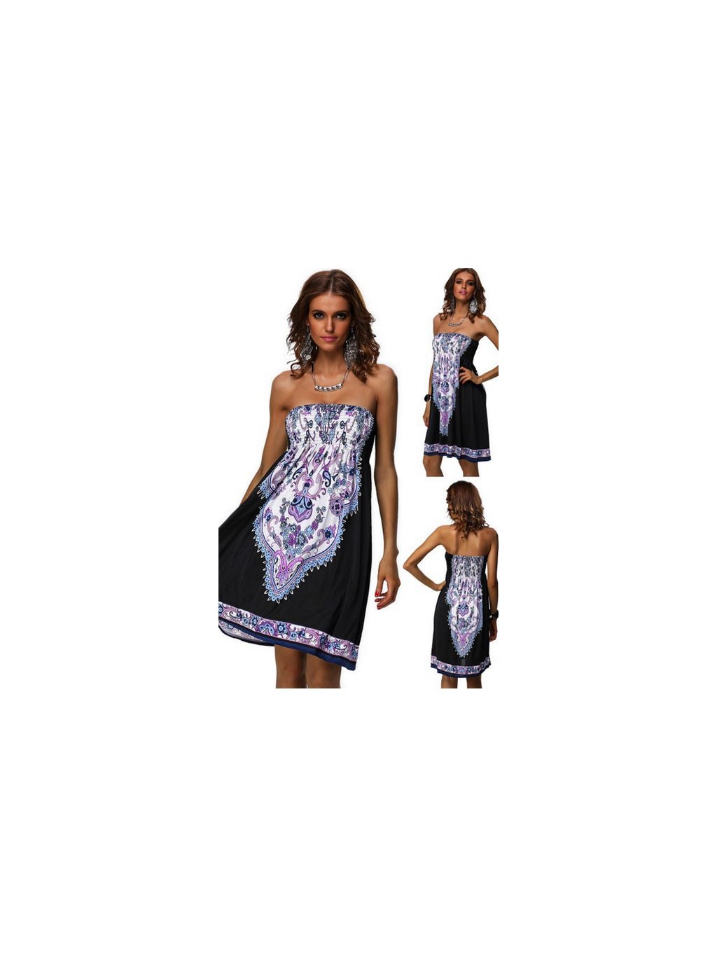 Šatičky na pláž vzorované Budte i na pláži i momo ní elegantní. Šatičky jsou vhodné pro velikosti od S, M jelikož jsou z pružného a příjemného materiálu. Přes prsa je žabičkové řasení, které bude krásně držet šatičky na správném místě.
