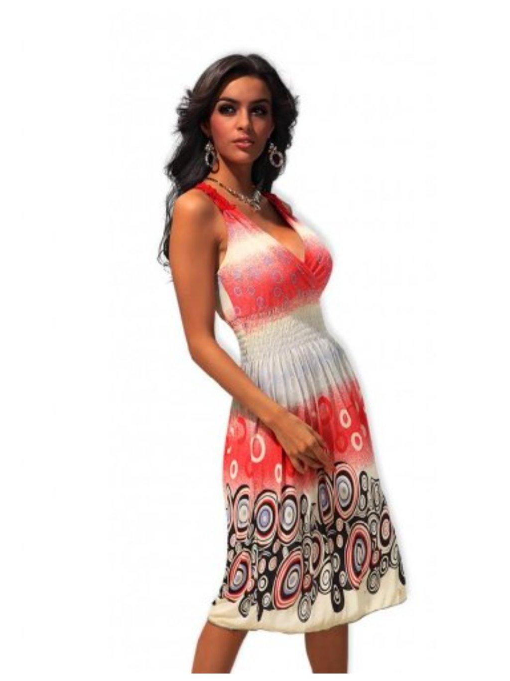 Šatičky na pláž vzorované Budte i na pláži i momo ní elegantní. Šatičky jsou vhodné pro velikosti od S, M jelikož jsou z pružného a příjemného materiálu, vzadu mají žabičkové řasení a tak se krásně přizpůsobí Vaší postavě.