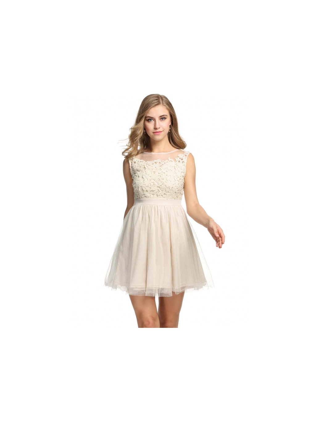A Plesové šaty krátké s krajkou béžové s perličkami 45-3