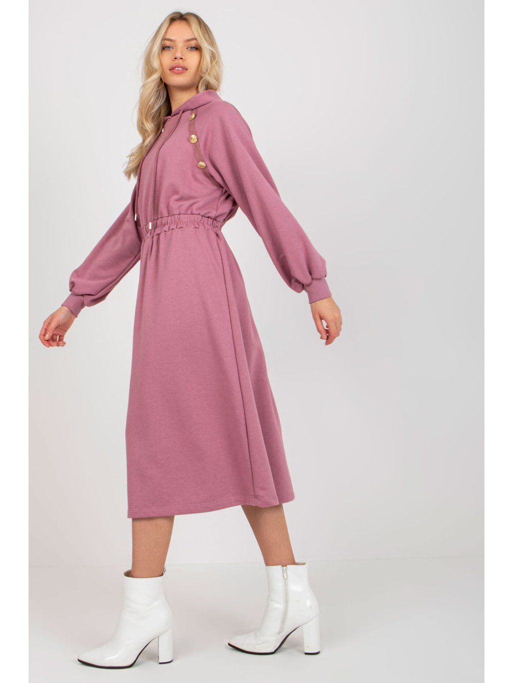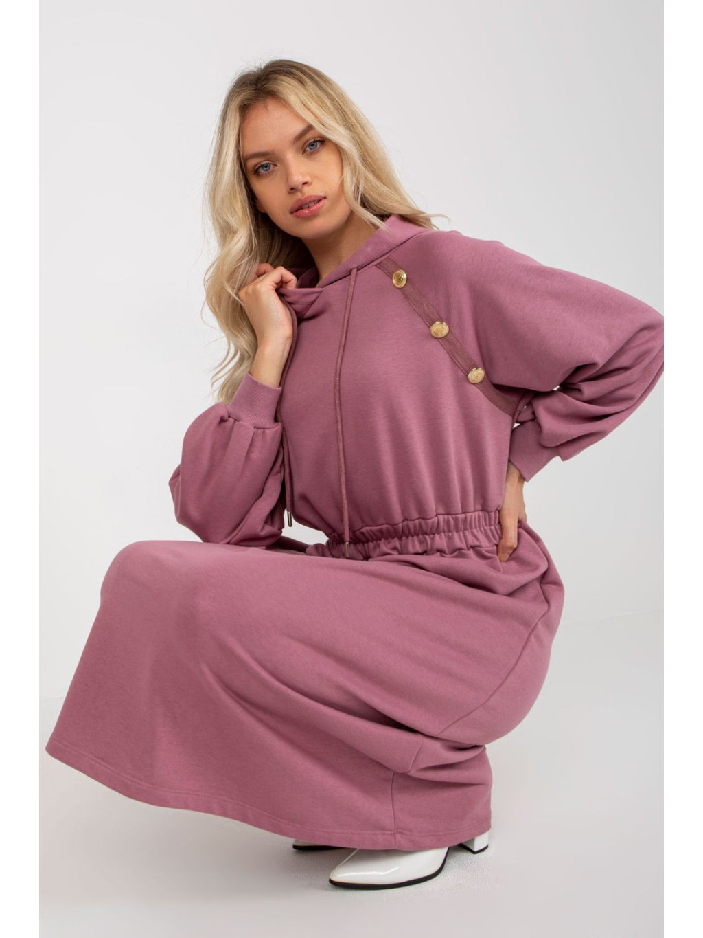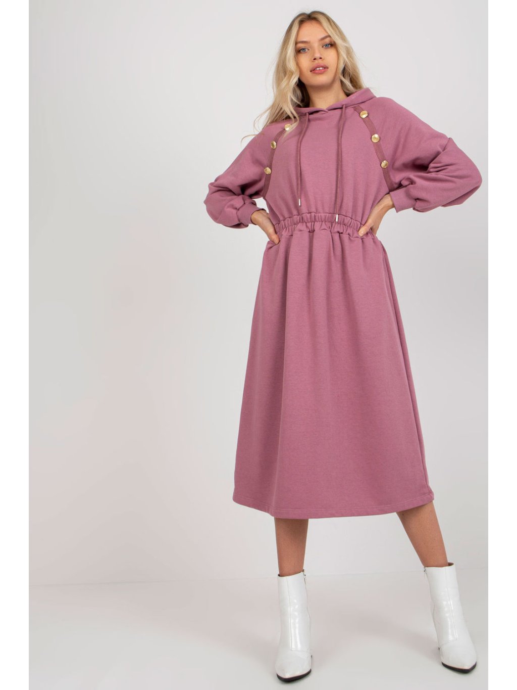 Mikinové šaty s dlouhými rukávy a kapucí. Elastický pas, ozdobné knoflíky na přední straně. Každodenní nabídka.