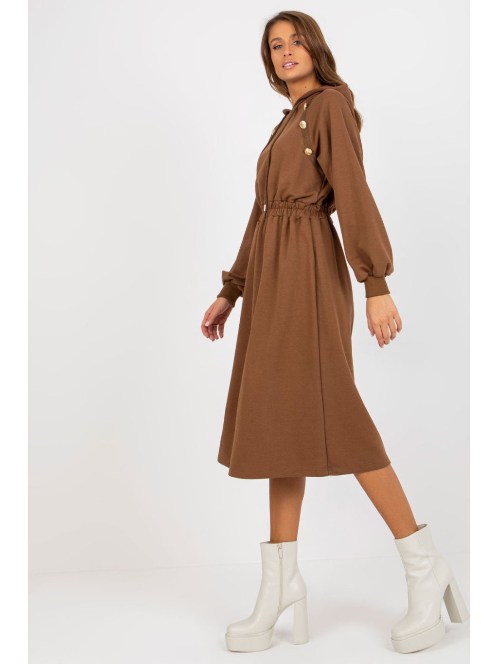 Mikinové šaty s dlouhými rukávy a kapucí. Elastický pas, ozdobné knoflíky na přední straně. Každodenní nabídka.