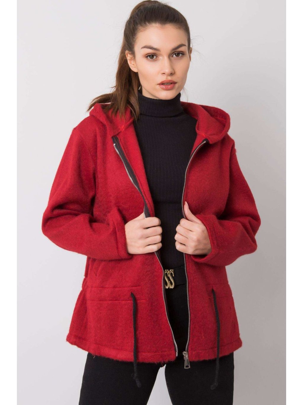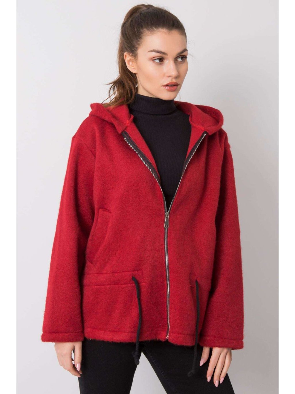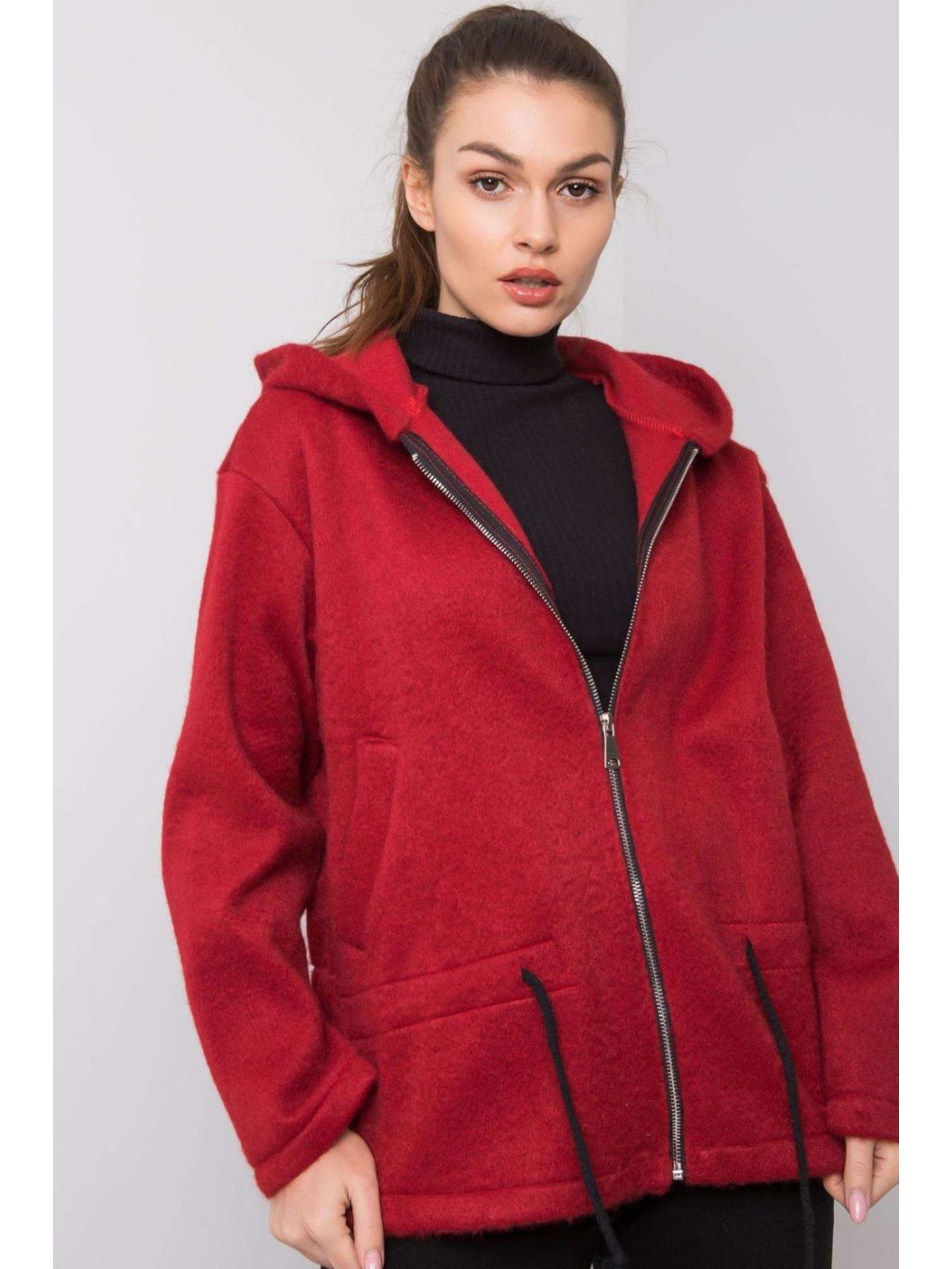 Dámská bordó mikina na zip s kapucí. Ideální pro každodenní nošení.