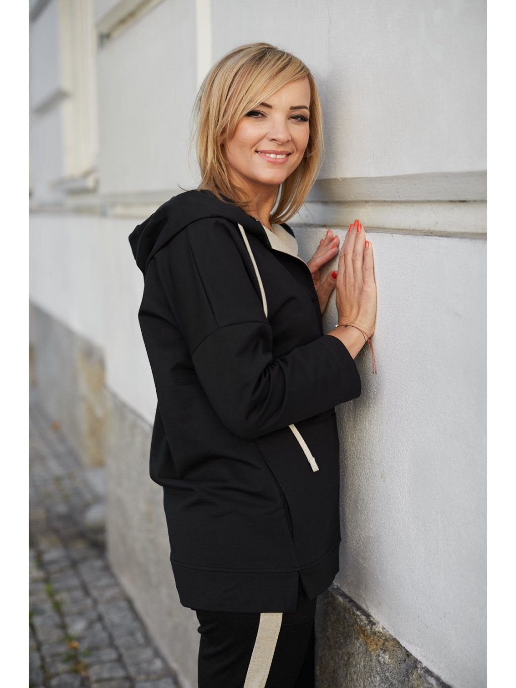 Sportovně elegantní mikina s kapucí z béžového úpletu s vetkanou zlatou nití. Celé je ušito z elastického bavlněného úpletu, který je vyzkoušený a oceňovaný našimi zákazníky. Přiléhavý střih se spadlými rukávy ve stylu kimona. Mikina je velmi esteticky provedená.