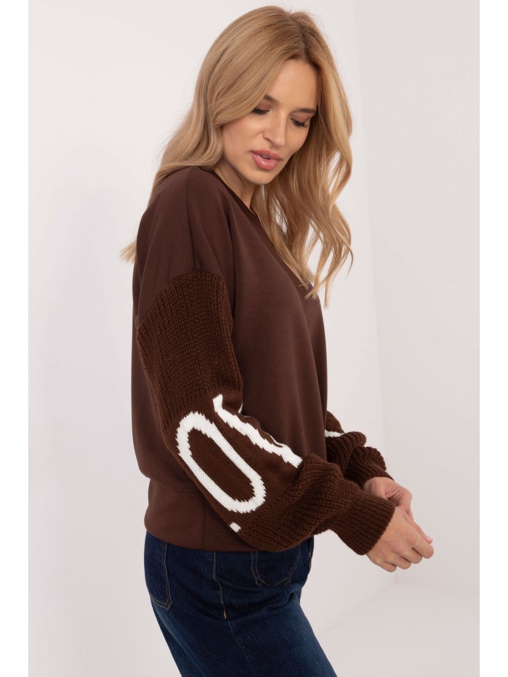 Dámská volná mikina, ideální na každý den, spojuje pohodlí s moderním stylem. Vyrobená z měkké směsi polyesteru, viskózy a elastanu, poskytuje pohodlí po celý den. Hladký vzor zdůrazňuje minimalistický charakter mikiny, zatímco dlouhé svetrové rukávy s ozdobnými nápisy dodávají originalitu a módní akcent. Model s standardní délkou a kulatým výstřihem, který skvěle ladí s každodenními stylizacemi, vytváří volný a zároveň stylový vzhled. Je to nabídka pro ženy, které oceňují pohodlí a stylový vzhled každý den.