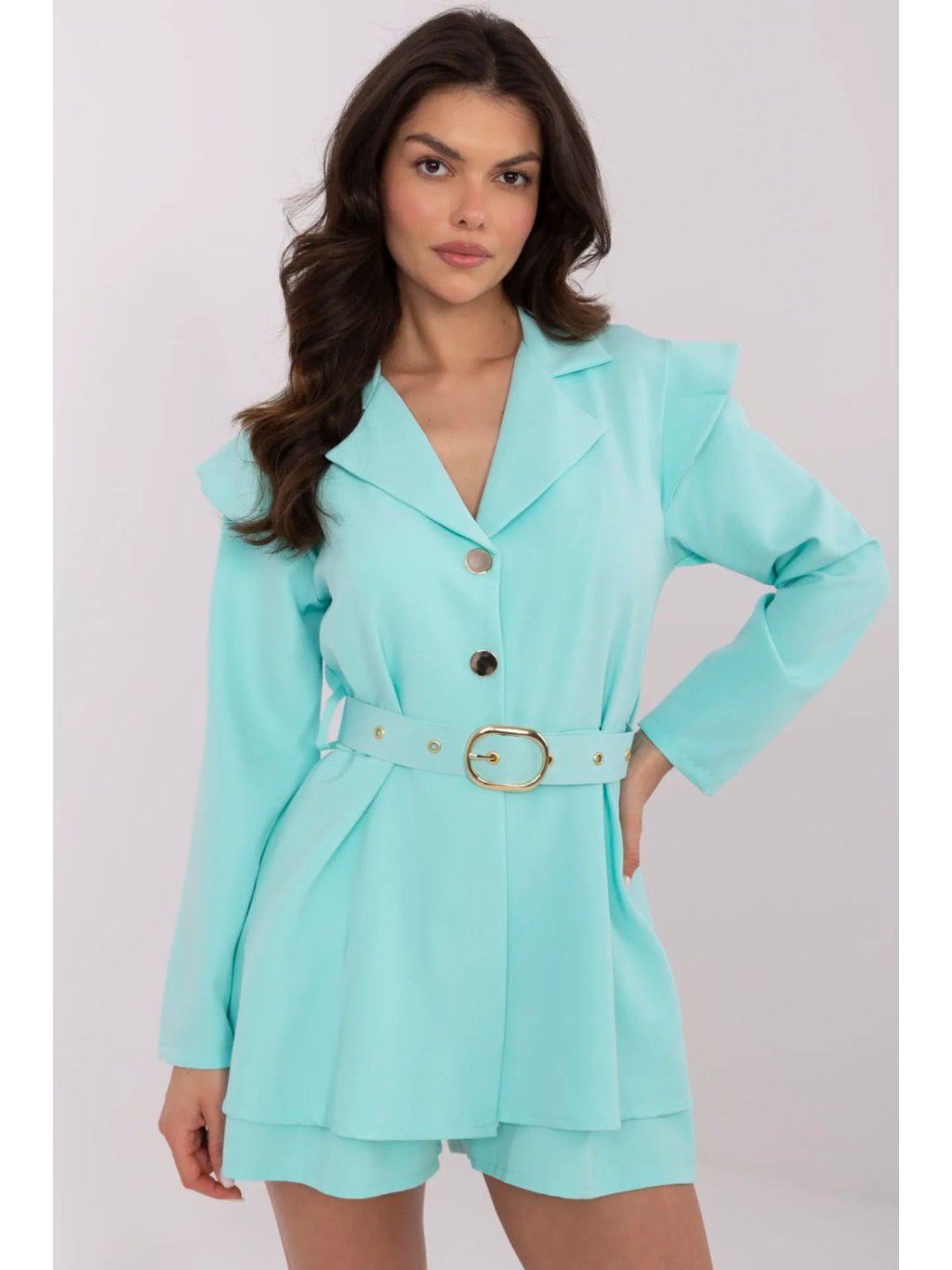 Elegantní dámský kombinéza je stylovou nabídkou pro mnoho příležitostí, ideální do práce, na formální setkání nebo večírek. Vyrobený z lehké a příjemné směsi polyesteru a viskózy, zaručuje pohodlí a skvělé přizpůsobení postavě. Jednolitá barva dodává ženský šarm, a volánky na ramenou jemně zdůrazňují stylový charakter. Kombinéza má mini délku, což jí dodává lehkost a elegance, a dlouhé rukávy a klasický límeček přidávají elegantní akcent. Zapínání na knoflíky a pás podtrhující pas dodávají celku mimořádně elegantní a ženský vzhled. Ideální nabídka pro ženy, které si váží spojení klasiky s moderním designem.