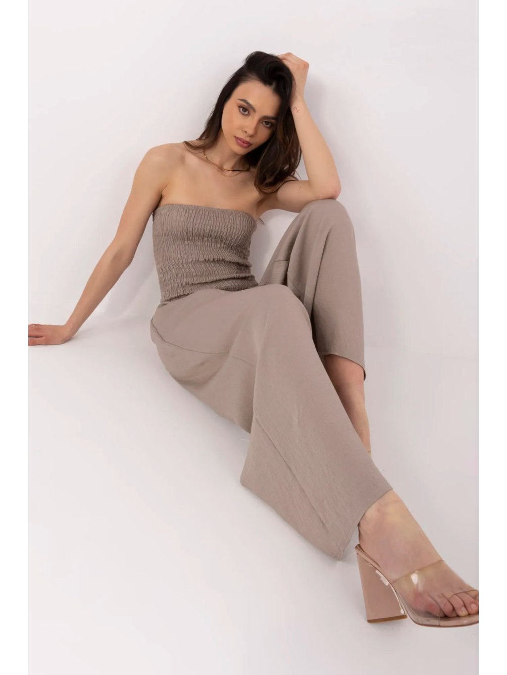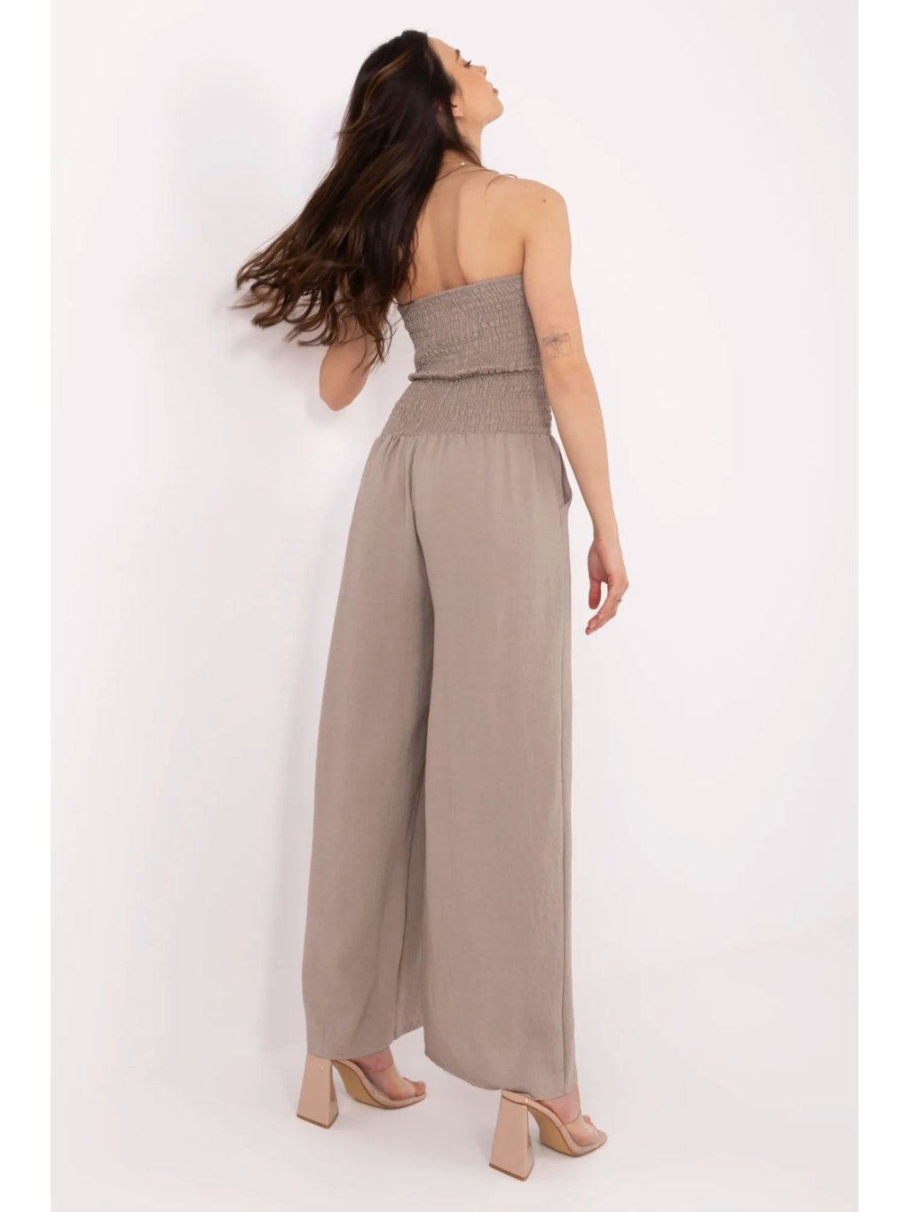 Stylový a pohodlný overal ideální na každodenní nošení. Ušitý z prodyšné a měkké viskózy, zaručuje pohodlí po celý den. Dlouhá, volná forma s širokými nohavicemi a španělským výstřihem vytváří moderní, uvolněný vzhled. Hladký materiál podtrhuje minimalistický charakter modelu a nařasení v horní části mu dodává decentní lehkost. Chybějící zapínání usnadňuje rychlé oblékání a boční, vsazené kapsy zvyšují funkčnost. Ideální volba pro ženy, které si cení stylu a pohodlí v jednom.