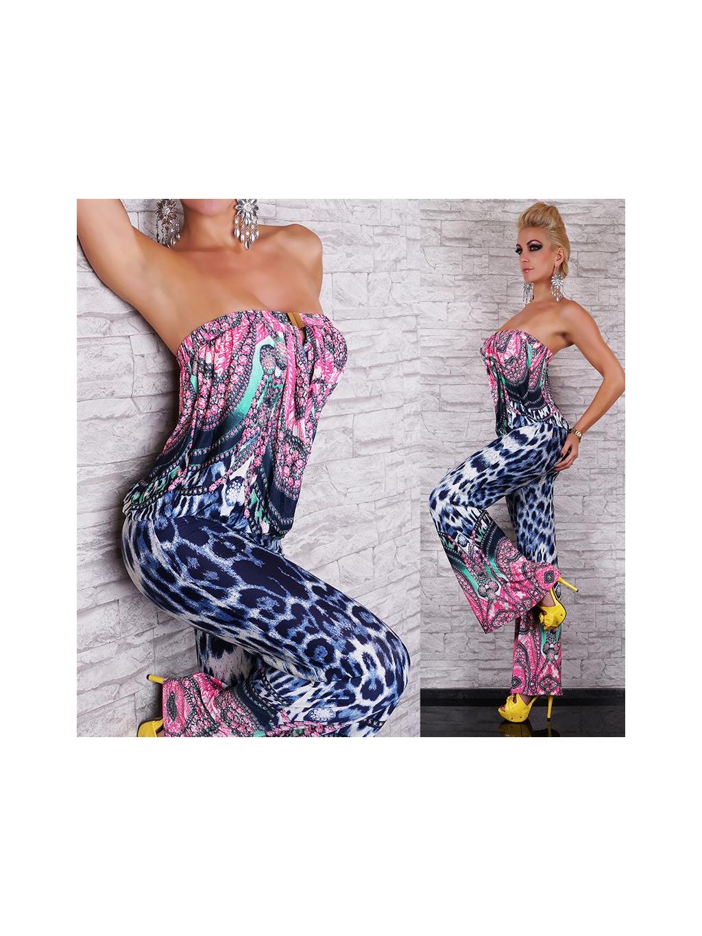 Dámský luxusní overal Trendy design, luxusní barevná kombinace a střih. Overal je velmi pružný, měřeno je to v klidném stavu na ramínku Rozměry (cca, neroztažené - roztažené) 36/38/40: celková délka(od prsou): 147cm nad prsy (horní lem s gumou): 68- 106cm v pase: 62-100cm složení: 93% POLYESTER 7% ELASTHANE