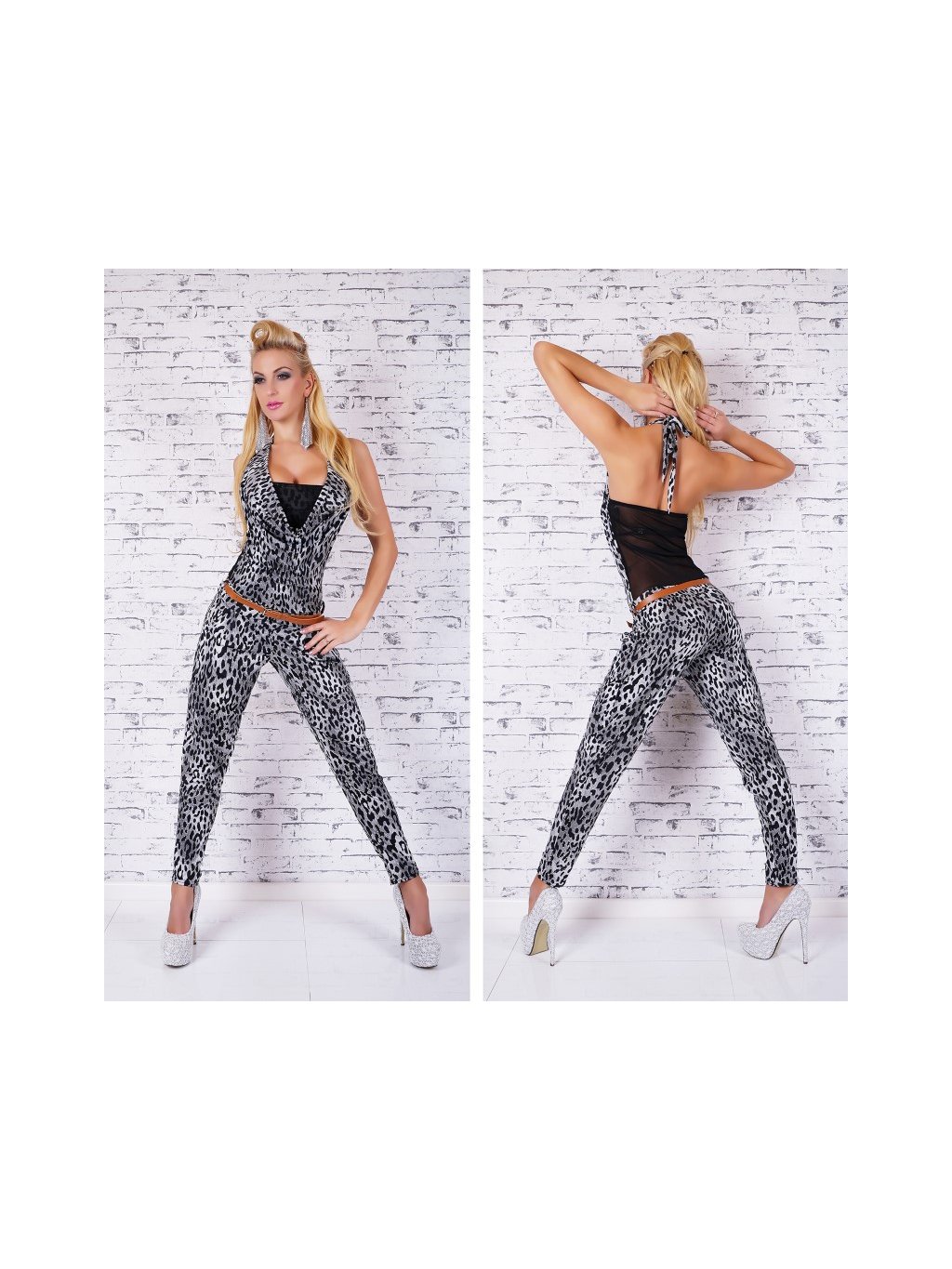 Dámský overal originální design Nevšední provedení dámského overalu s kombinací leopadích vzorů a krajky (na zádech je krajka jemně průhledná) Velikost universal S/M složení: 95% VISCOSE 5% SPANDEX