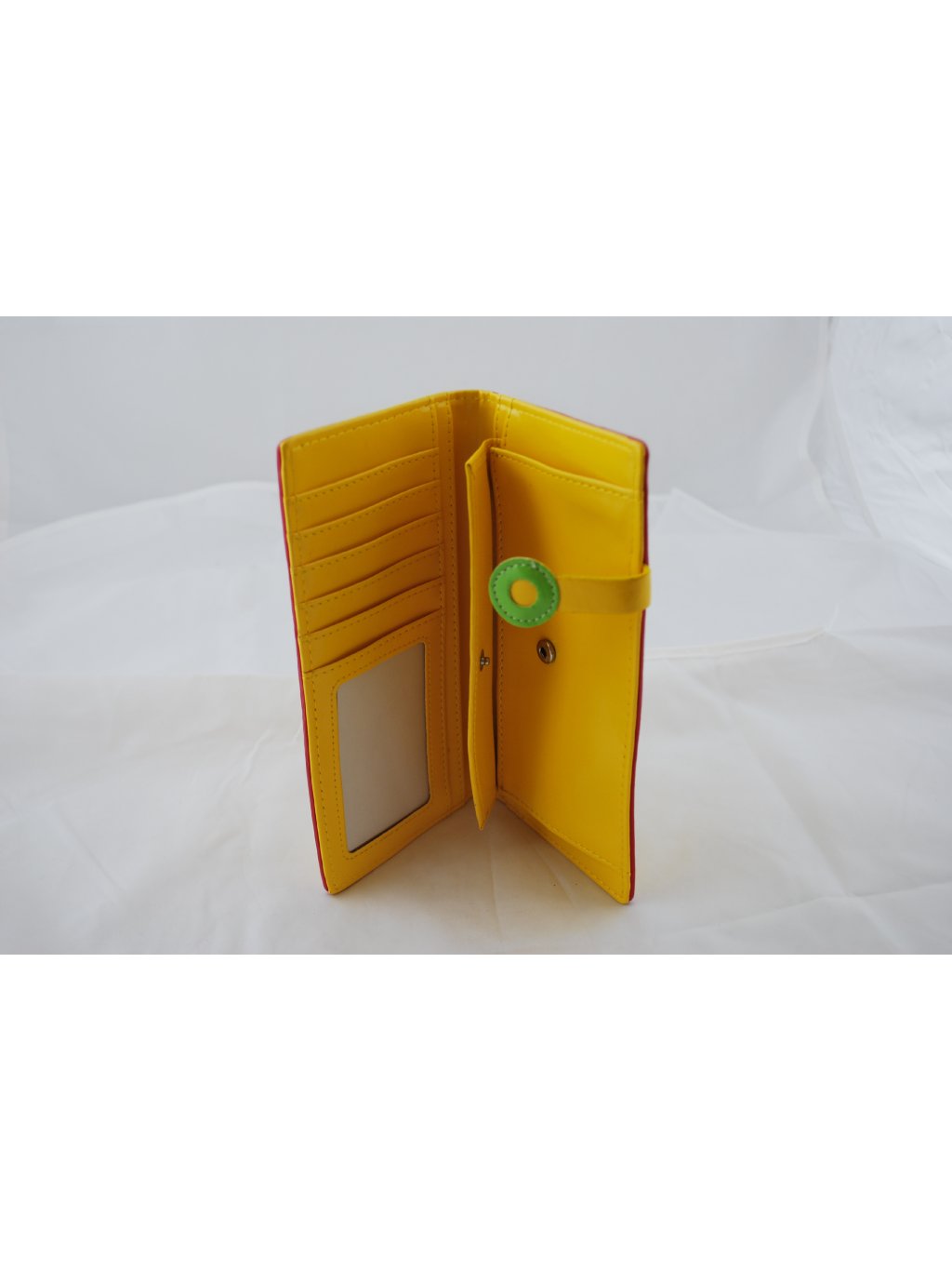 Peněženka má 3 velké kapsy na papírové bankovky, uzavíratelnou kapsičku na drobné a 6 přihrádek na karty. Průhledné okénko na doklady.