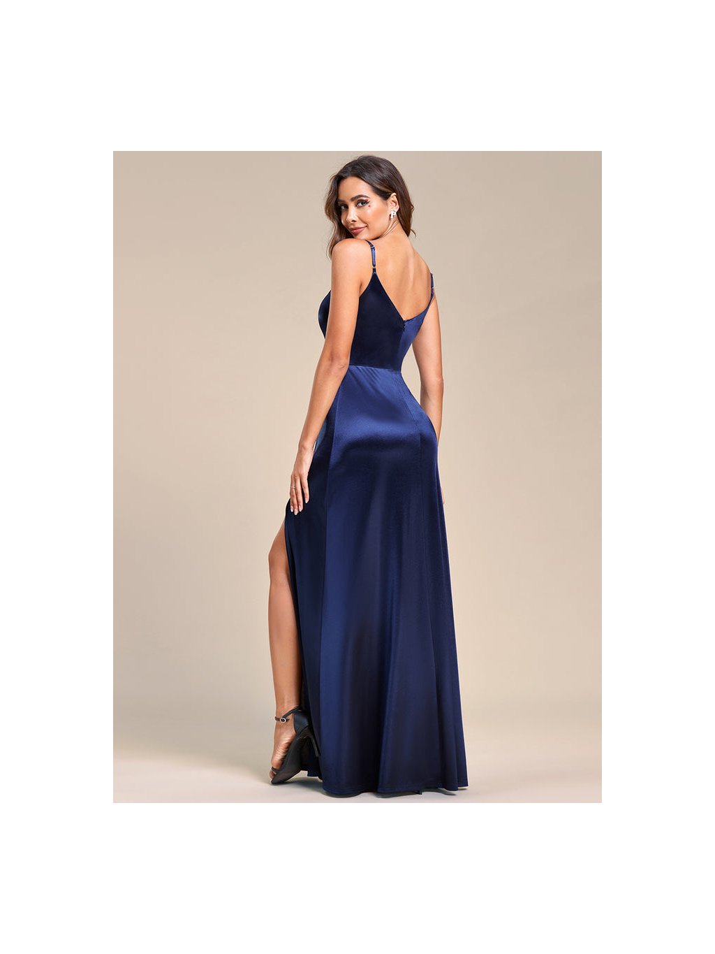 Nádherné tmavě modré šaty Ever Pretty. Šaty mají špagetová ramínka, která jsou nastavitelná. Na prsou mají véčkový výstřih. Na zádech skrytý zip. Šaty nemají vycpávky.