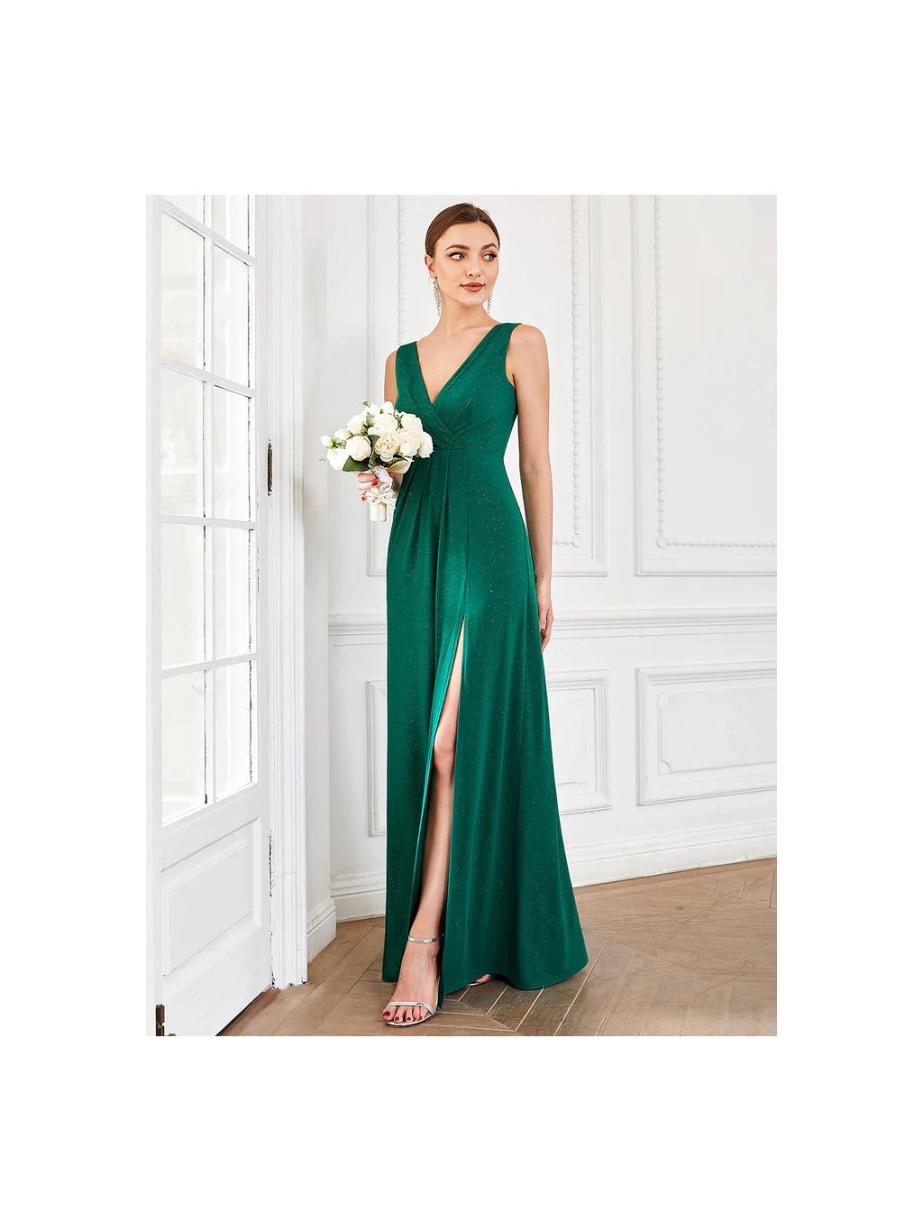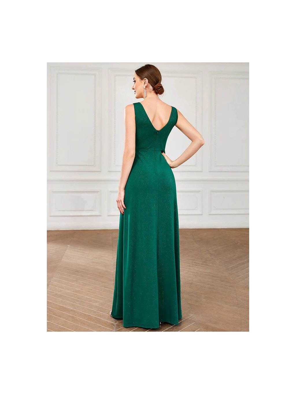 Nádherné zelené šaty Ever Pretty. Šaty mají široká ramínka. Na prsou mají véčkový výstřih. Na zádech skrytý zip. Šaty nemají vycpávky.
