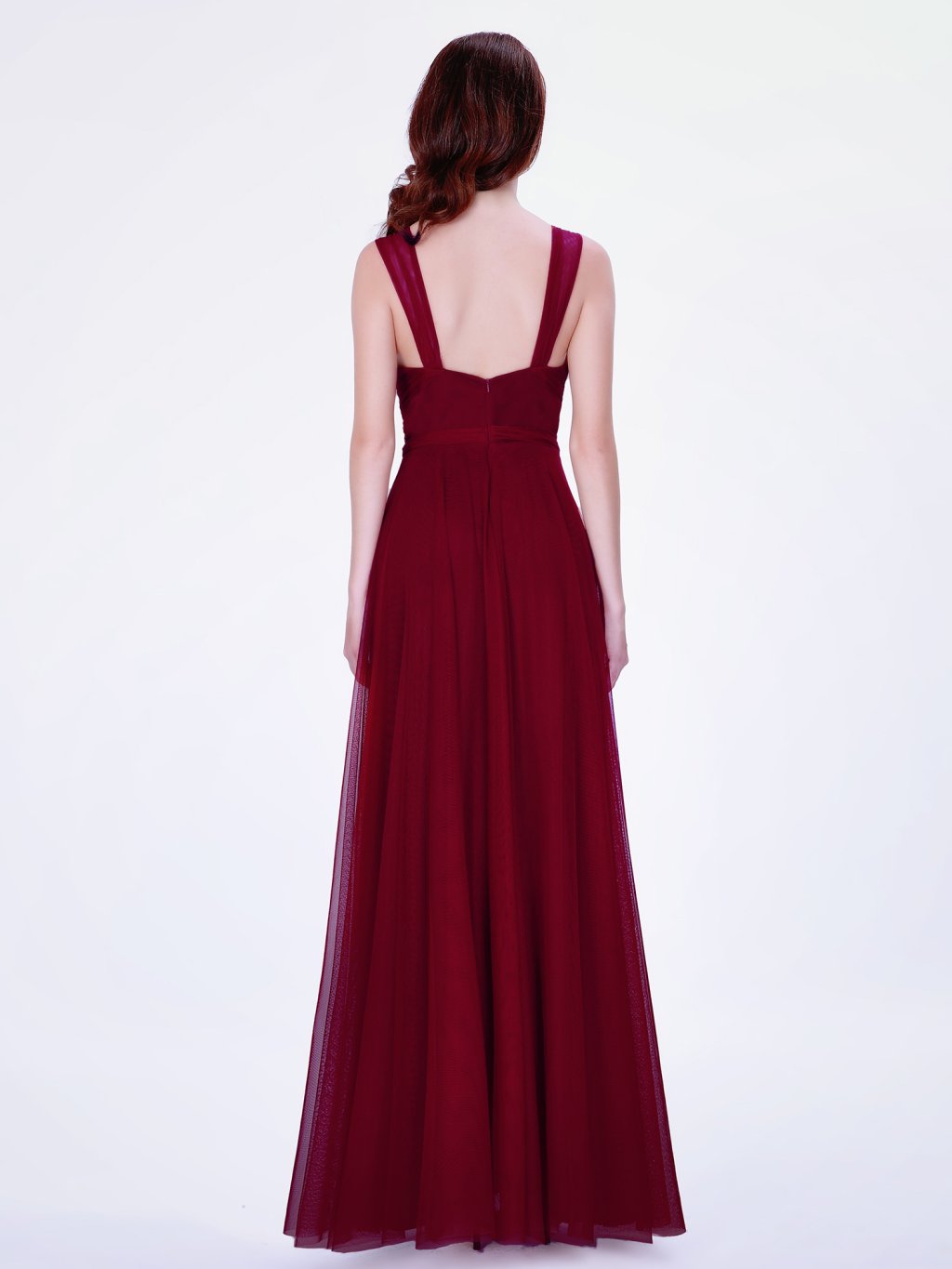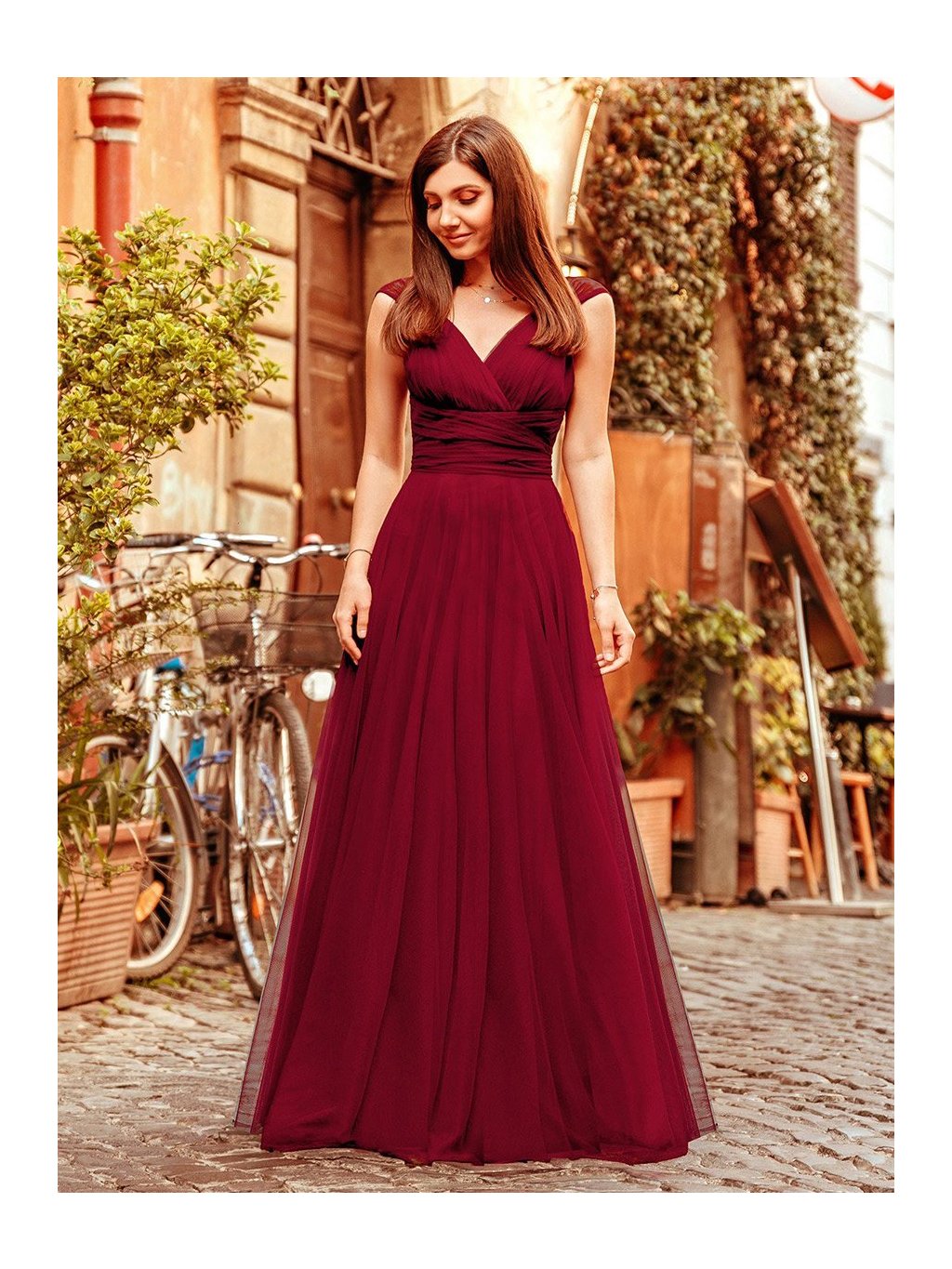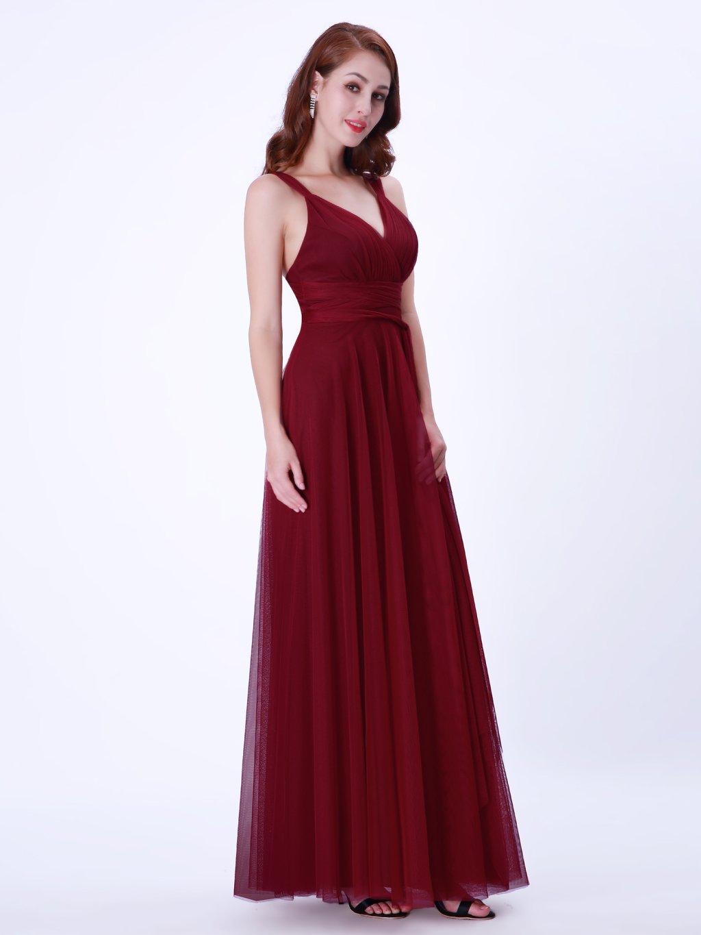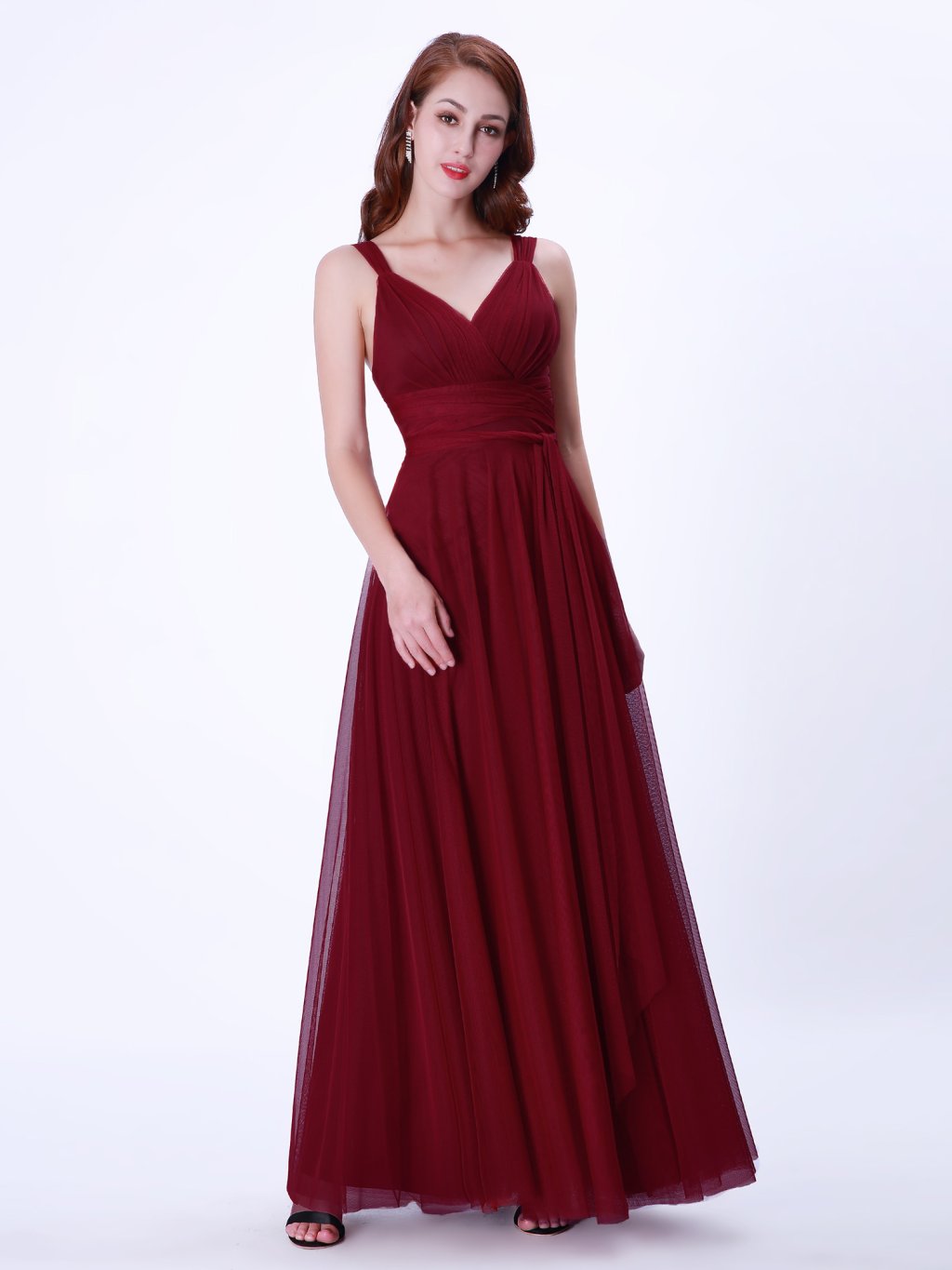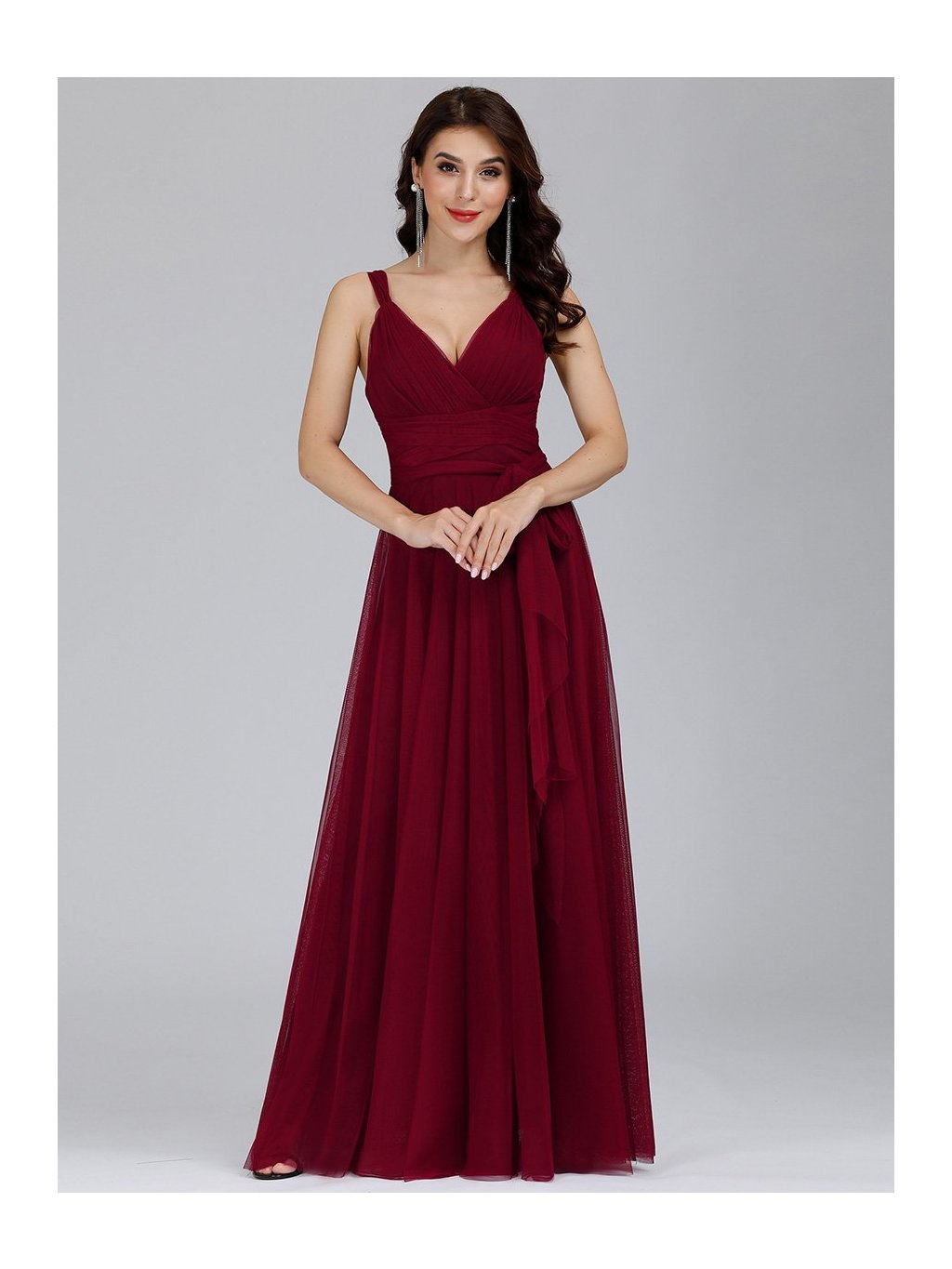 Krásné dlouhé šaty, na široká ramínka. V pase na vázání. Šaty mají krásný véčkový výstřih na prsou, na zádech rovný. Šaty mají vycpávky - lze vzít bez podprsenky. Na zádech je skrytý zip. Šatičky krásně padnou, jsou z velmi příjemného materiálu.