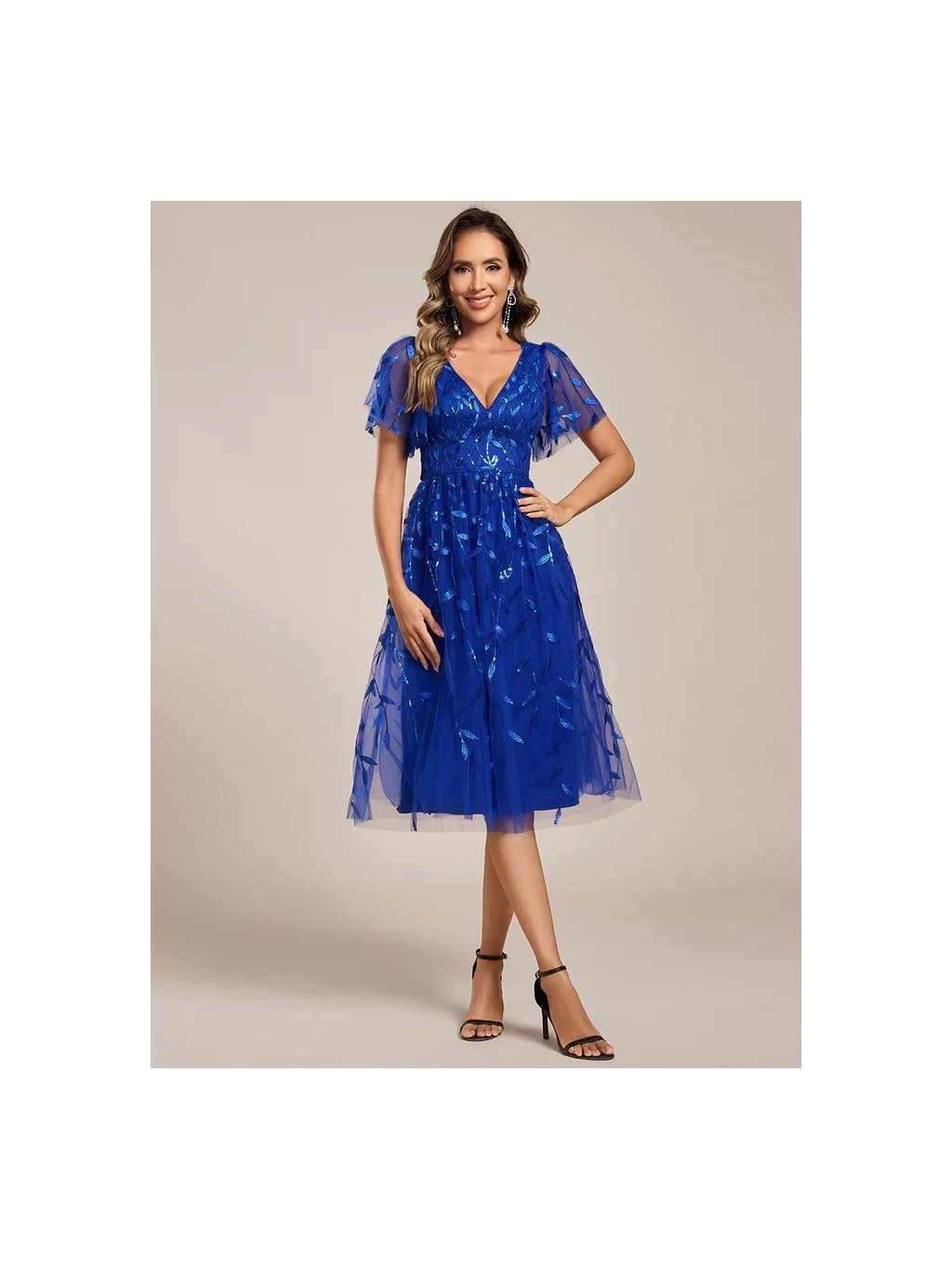 Ever Pretty šaty midi délka v safírově modré barvě 2230