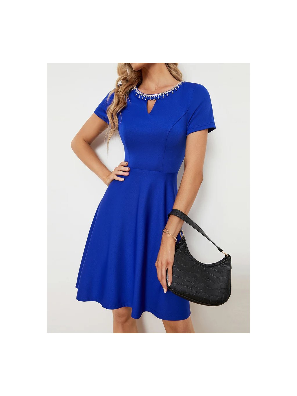 Tyto šaty jsou ideální na koktejlové večírky a zvláštní příležitosti, v nichž budete půvabné díky ozdobě u krku.