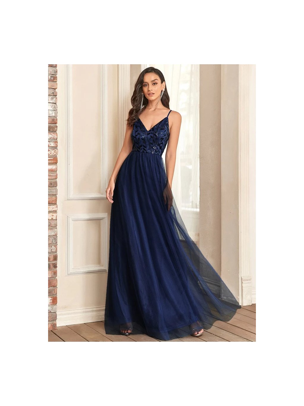 Ever Pretty šaty modré dlouhé ramínka 50090