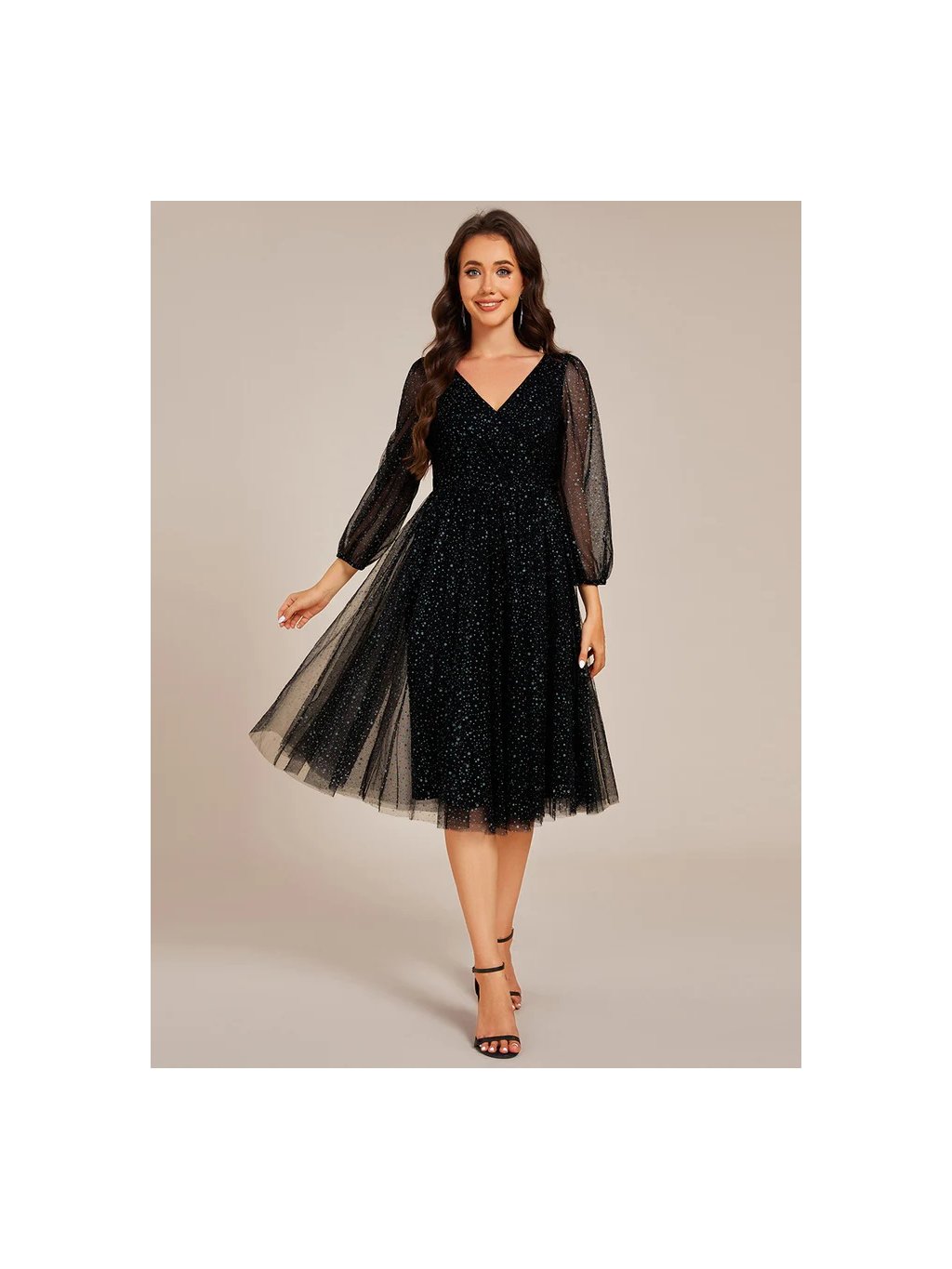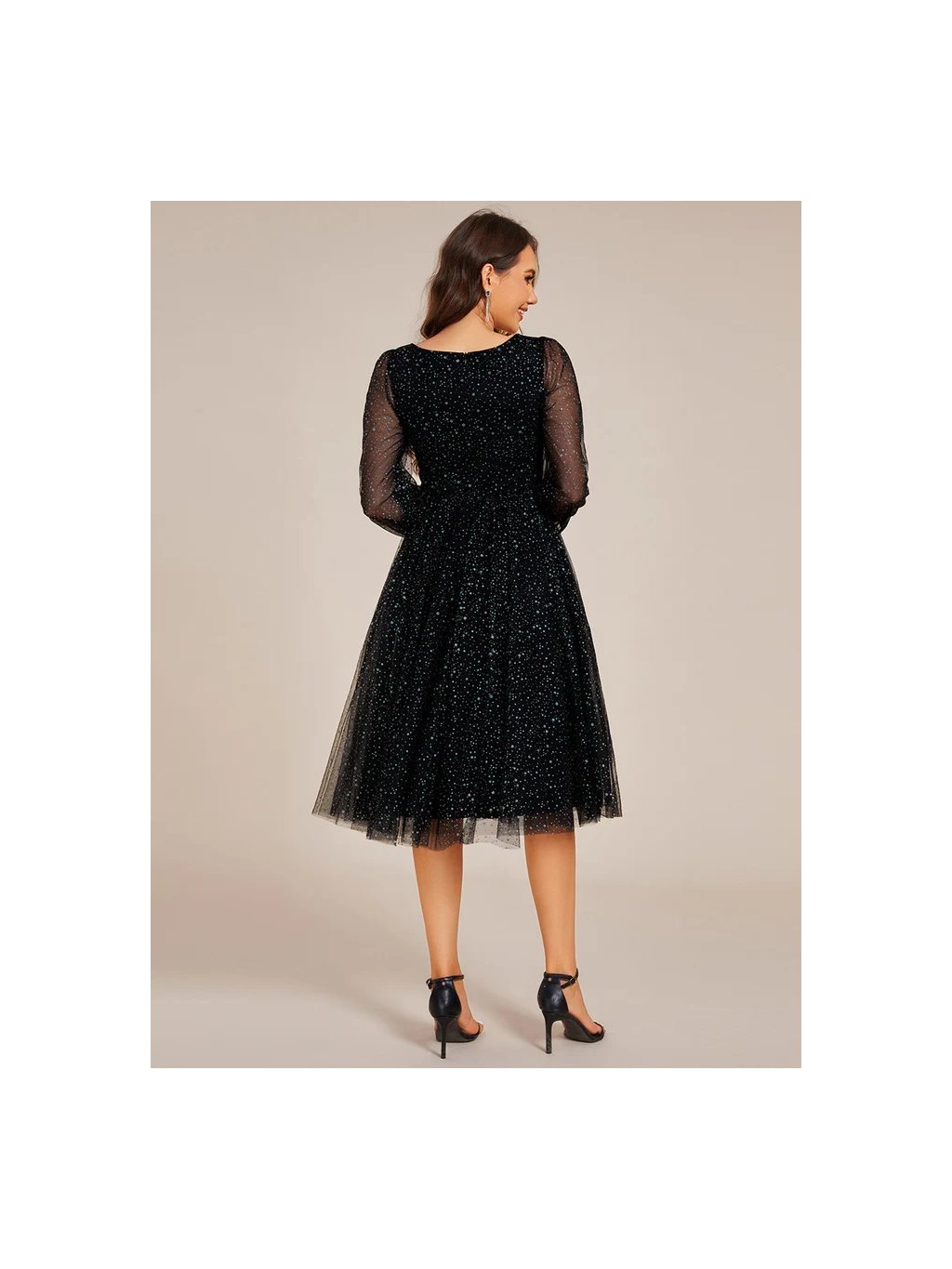 Krásné lesklé šaty s flitry v midi délce ,s dlouhým rukávem ,velký výstřih na zádech skrytý zip.