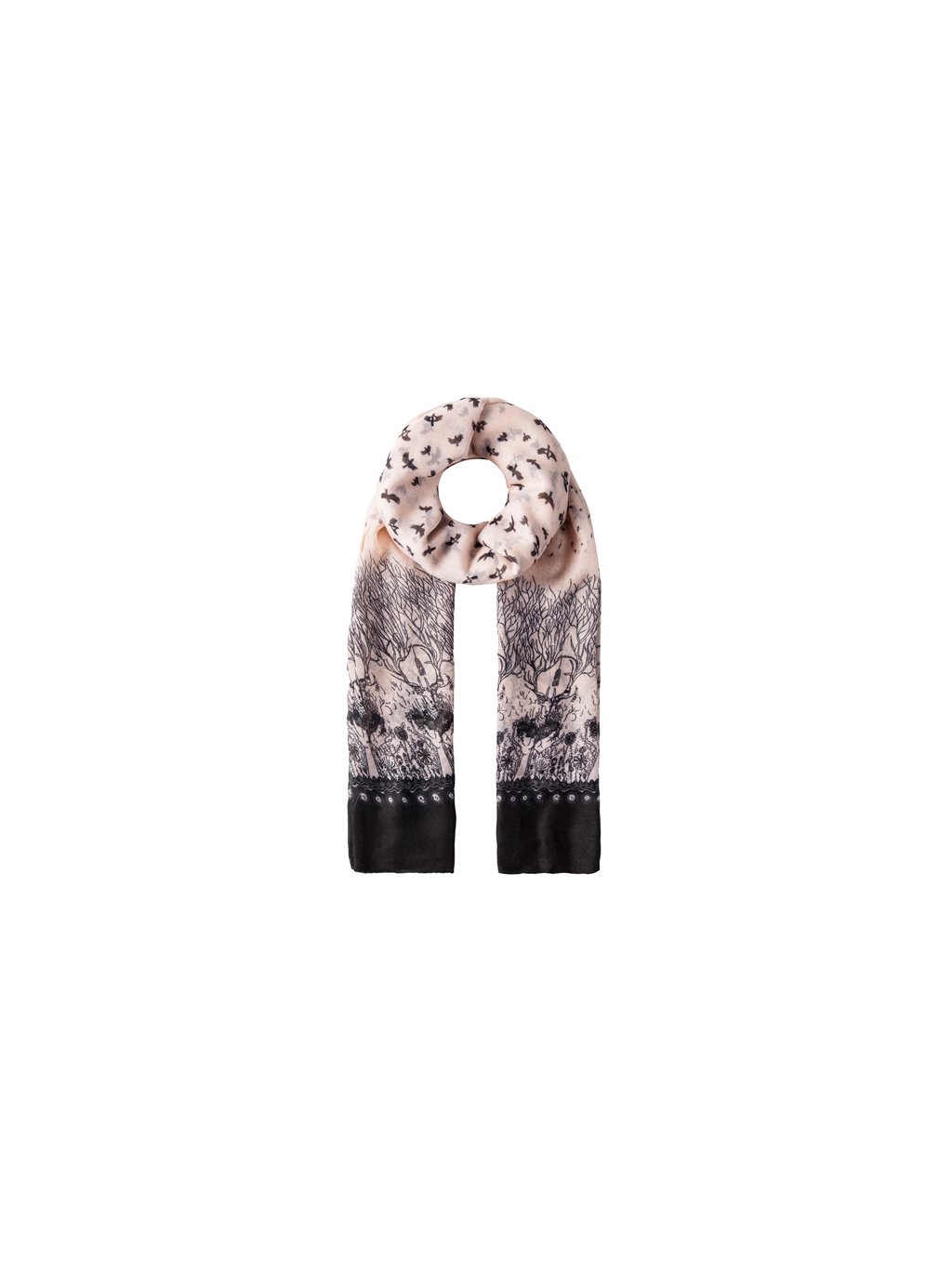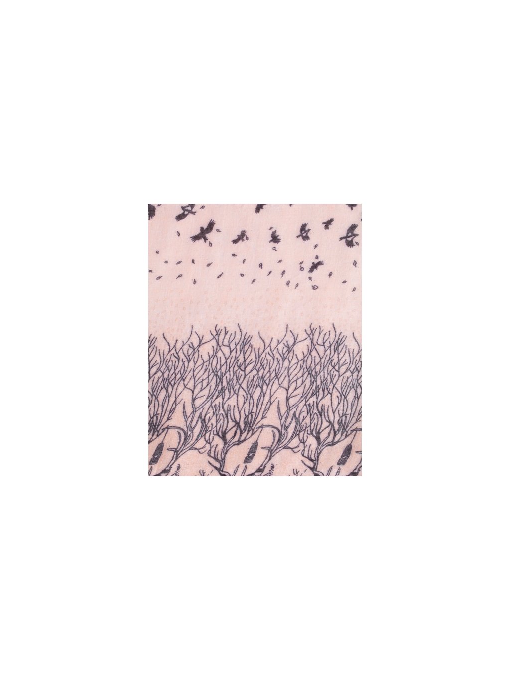 Luxusní šálka s motivy ptáků a stromů v barvě apricot - jemně růžovo oranžovérozměr: 180 x 90cm 30° na jemné ruční praní 100% polyester