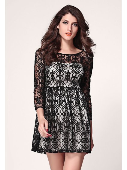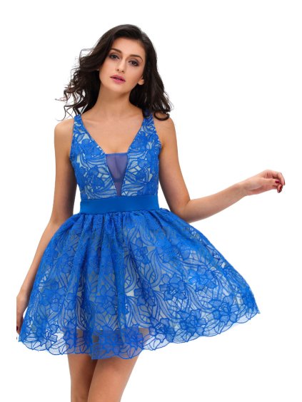 Nevšední šaty s průhledy jemně modré, poslední kus, velikost L