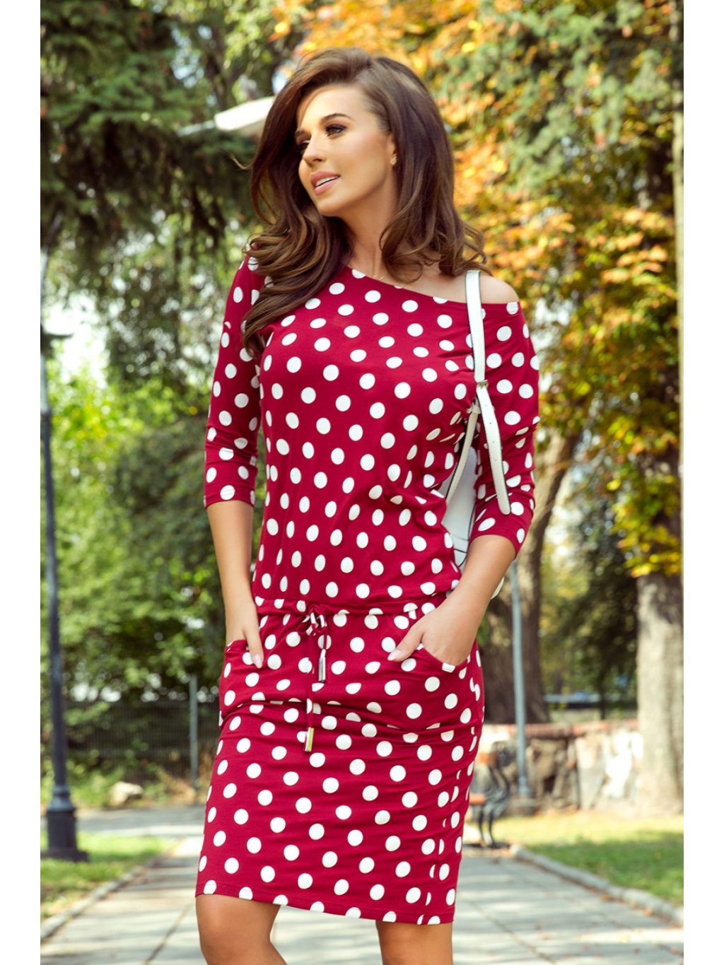 Sportovní šaty se zavazováním vpředu, kapsami, lodičkovým výstřihem a 3/4 rukávy. Polská produkce. Vyrobeno z elastické tkaniny příjemné na dotek. Značka numoco.