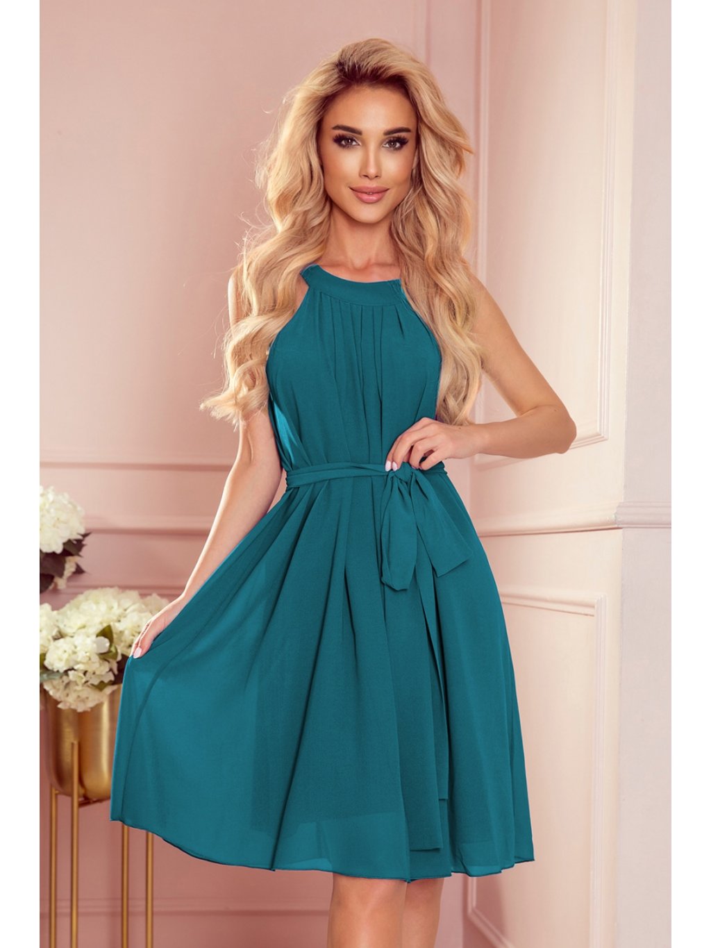 Vzdušné šifonové šaty s páskem a zavazováním na zádech. Šaty v tmavě modré barvě. Značka numoco. Vyrobeno v Polsku.