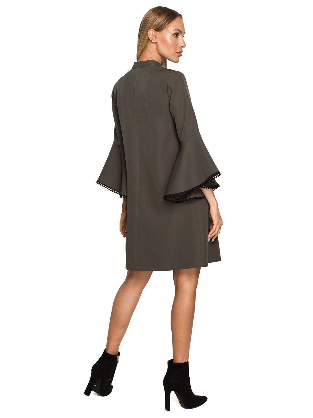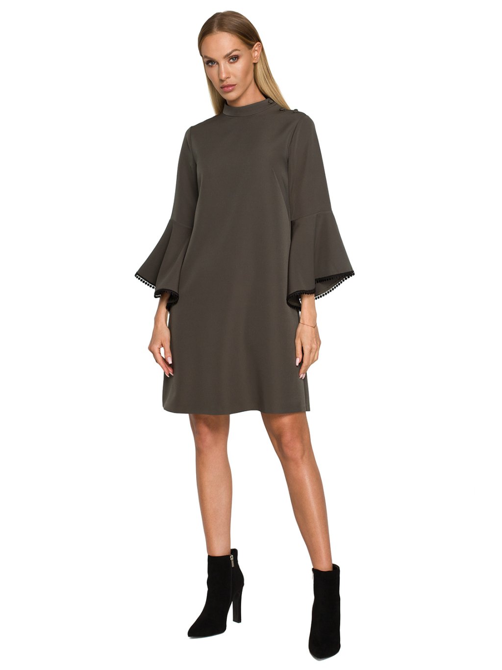 Šaty s lichoběžníkovou nebo áčkovou linií nejenže dodávají dívčí půvab, ale také pomáhají zakrýt nedostatky postavy. Dali jsme si záležet na detailech, které ho dělají výjimečným: široké, volánové rukávy jsou zdobené jemnou stuhou s kulovitým lemováním. Šaty jsou bez podšívky.