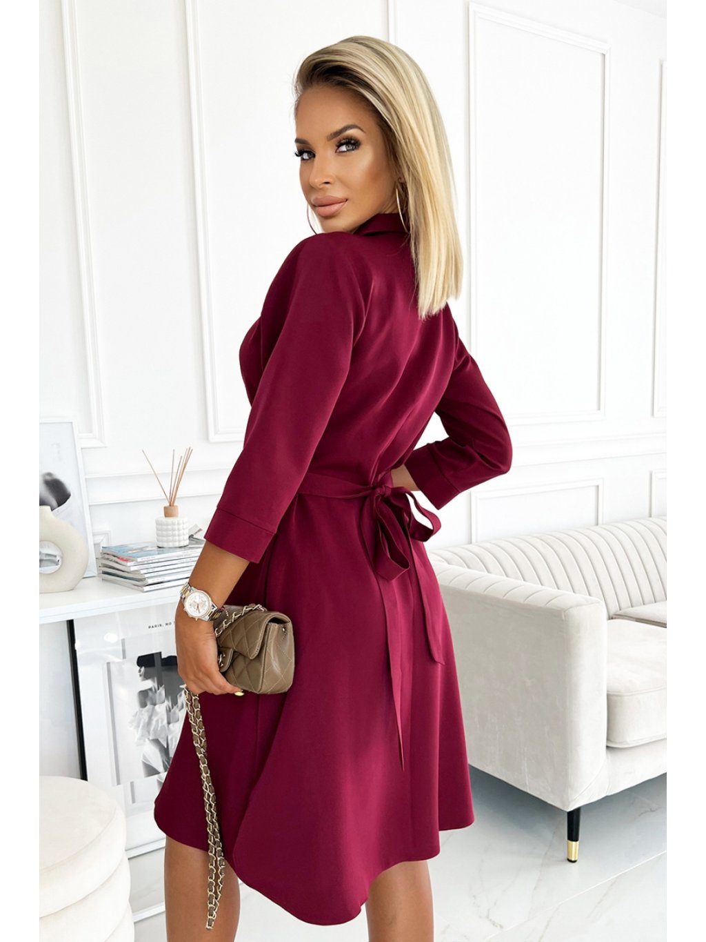 Vínové rozevláté šaty s kapsami. Vyrobeno z příjemného na dotek, málo elastického materiálu (95 % polyester, 5 % elastan). Značka numoco. Polská produkce.