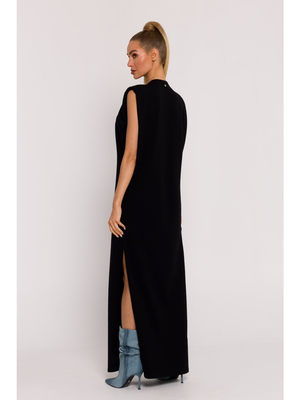 Tyto pletené šaty jsou výrazem luxusu a výjimečné polské krejčovské práce, kde se v jednom designu snoubí smysl pro detail a pohodlí. Jsou navrženy a ušity v Polsku a představují jedinečný styl a pohodlí při nošení. Šaty nadměrné velikosti jsou ideální volbou pro ženy, které si cení volnosti pohybu, aniž by obětovaly eleganci. Díky svému střihu, který se nosí přes hlavu, se mimořádně snadno a pohodlně nosí. Rozparky na bocích dodávají šatům lehkost a jemnou smyslnost. Provedení šatů bez rukávů, podpořené ramenními vycpávkami, dodává celému vzhledu moderní a jedinečný nádech. Ramenní vycpávky dodávají šatům strukturu a zároveň zdůrazňují jejich jedinečný tvar. Díky maxi délce se šaty hodí jak na elegantní vycházky, tak i na neformálnější příležitosti. Ozdobná etiketa na zádech je nejen designovým prvkem, ale také decentním akcentem, který celý design umocňuje. Pečlivé zpracování cínu podtrhuje vysokou kvalitu šatů. Díky absenci podšívky jsou navíc šaty vzdušné a lehké, což je ideální pro teplejší dny. Tyto pletené šaty nejsou pouhým oděvem, ale vyjádřením polské krejčovské tradice, která v sobě spojuje eleganci, pohodlí a jedinečný design. Ideální pro ženy, které se chtějí vyjádřit prostřednictvím módy a zdůraznit svůj individuální styl.