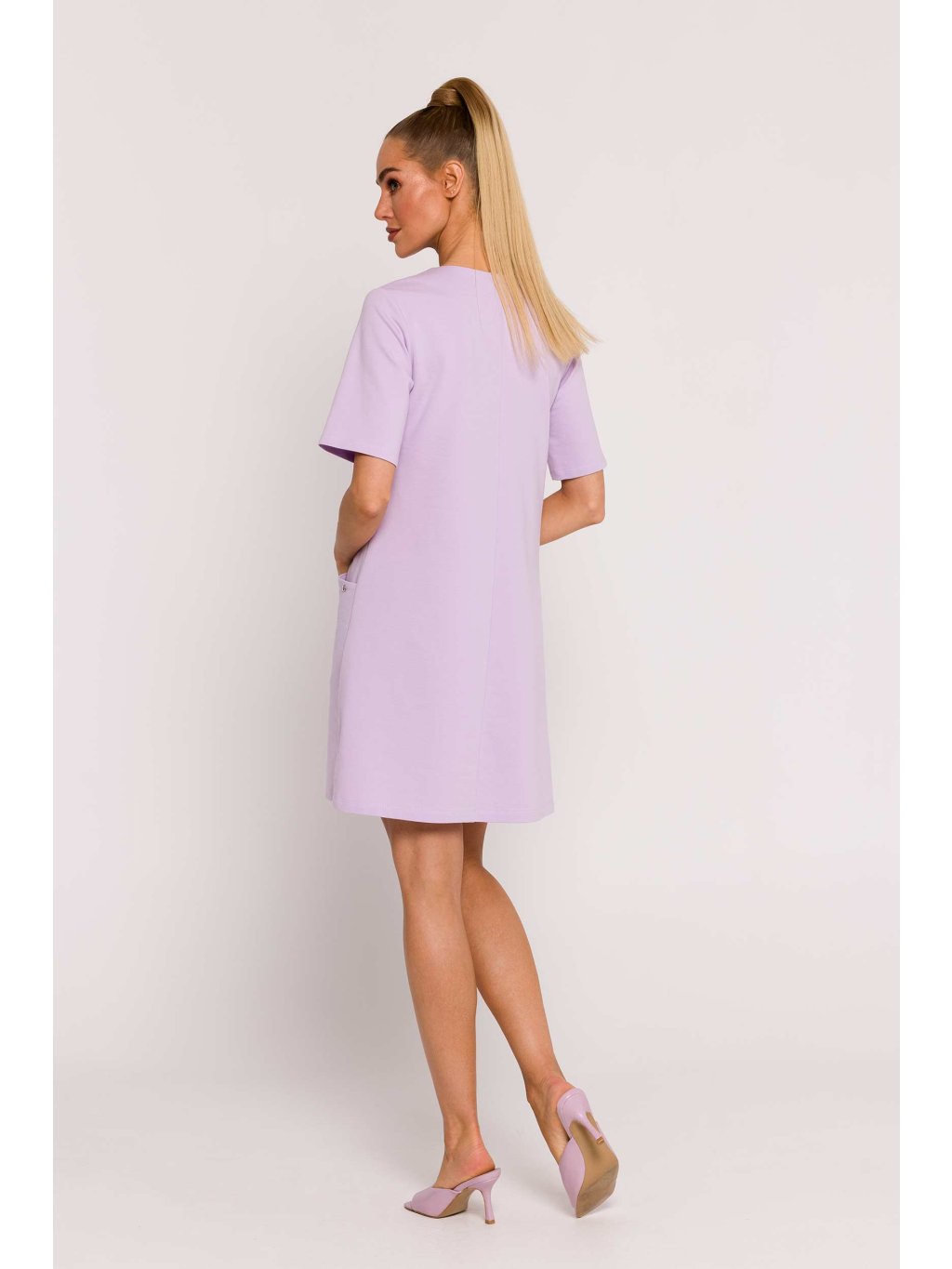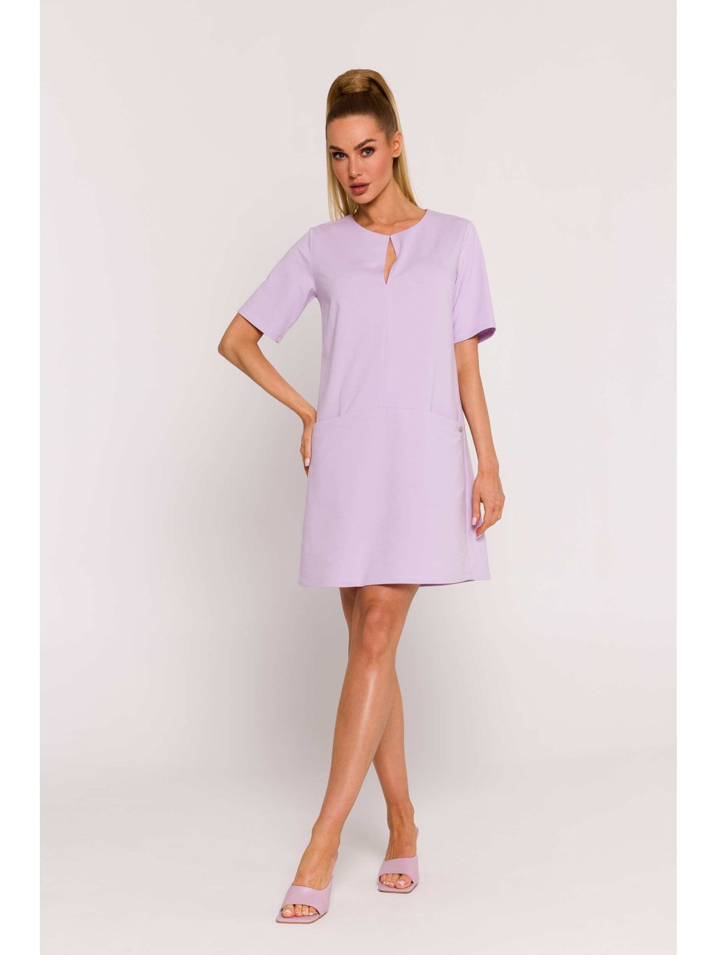Tyto pletené šaty jsou jedinečným výrobkem, který byl navržen a vyroben s důrazem na detail v Polsku a který podtrhuje vysokou kvalitu a styl polského krejčovství. Šaty mají áčkový střih, který jim dodává lehkost a zároveň zvýrazňuje ženskou siluetu. Jemný výstřih dodává šatům jemnost a vytváří harmonickou rovnováhu mezi elegancí a každodenním pohodlím. Díky krátkým rukávům jsou šaty ideální pro teplejší dny a dodávají celkovému vzhledu lehkost. Praktické boční kapsy skryté ve švech na přední straně šatů jsou nejen funkční, ale také dodávají nonšalanci a městský nádech. Ozdobný štítek s logem umístěný na jedné z kapes je elegantním dekorativním prvkem, který podtrhuje jedinečnost šatů. Za zmínku stojí, že šaty nemají podšívku, díky čemuž jsou lehké a vzdušné, ideální pro letní dny. Tento oděv nejen podtrhuje polský design a krejčovskou tradici, ale také spojuje funkčnost, pohodlí a módní styl. Tyto šaty jsou vynikající volbou pro ženy, které hledají jedinečný kousek oblečení, ideální jak pro každodenní nošení, tak pro zvláštní příležitosti.