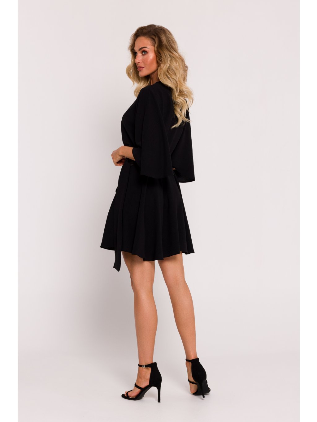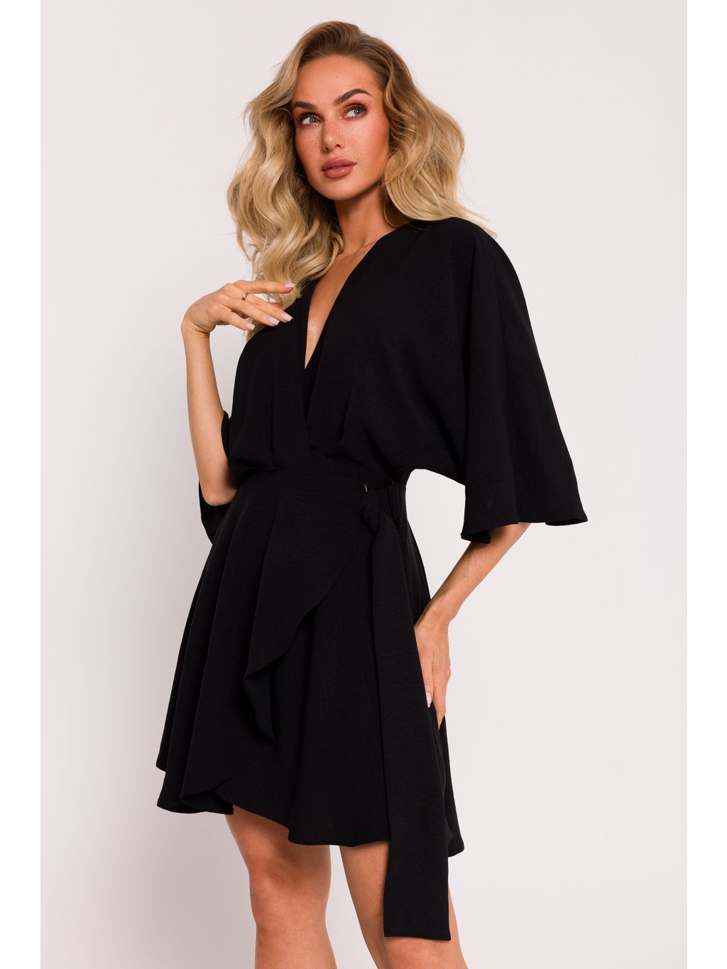 Představujeme výjimečné šaty z krepové látky, které byly hrdě navrženy a ušity v Polsku. Tyto mini šaty jsou skutečným mistrovským dílem polského krejčovství a spojují eleganci, pohodlí a originální design. Krepová tkanina použitá k výrobě těchto šatů je látka s jemnou strukturou, která dokonale sedí na těle a dodává šatům jemný, vzdušný charakter. Polský podíl na designu těchto šatů odráží pozornost věnovanou kvalitě zpracování a dovedné kombinaci moderních trendů s krejčovskou tradicí. Střih šatů je rozšířený, což jim dodává lehkost a pohyblivost. Netopýří rukávy dodávají šatům prvek originality a vytvářejí jemný, jedinečný detail, který upoutá pozornost. Šaty přejímají obálkový tvar se skrytým vázáním uvnitř, což zajišťuje nejen pohodlné nošení, ale také elegantní vzhled. Ozdobné vázání se sponou na vnější straně dodává šatům charakter a eleganci a zároveň vytváří designový módní dojem. Pas šatů je částečně elastický, což zvýrazňuje přirozené křivky siluety a zároveň zajišťuje pohodlné nošení. Tyto šaty jsou ideální jak pro letní setkání, tak pro slavnostnější příležitosti. Jedinečnou vlastností těchto šatů je absence podšívky, což znamená, že krepový materiál dokonale sedí na těle a zanechává pocit lehkosti a volnosti. Nejedná se o pouhý oděv, ale o výraz polské krejčovské tradice a designérské inovace, která se hrdě prezentuje na světové módní scéně.