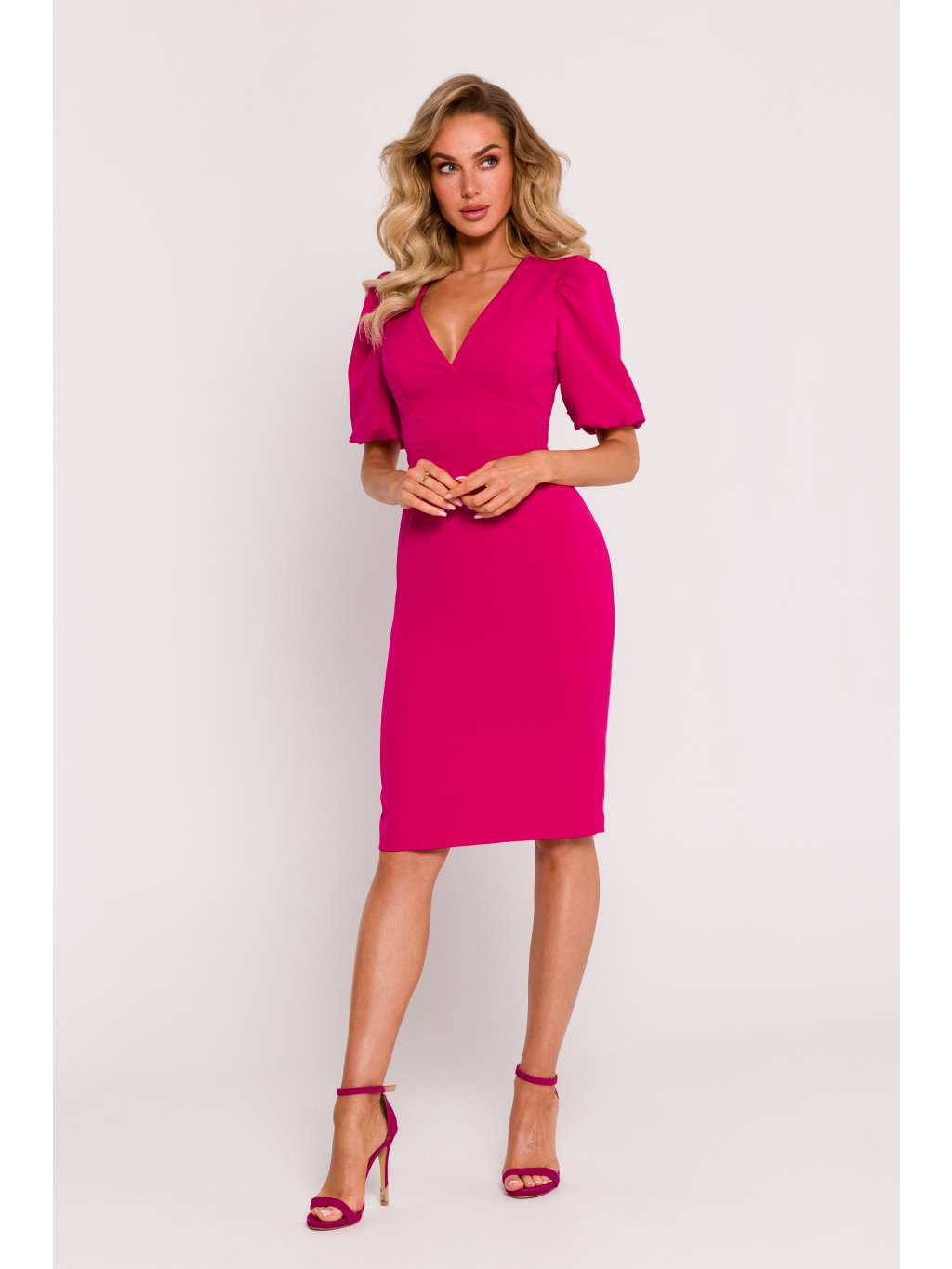Představujeme výjimečné tkané šaty, které byly navrženy a ušity s naprostou profesionalitou v Polsku. Tyto šaty do pasu jsou kombinací elegance, třídy a vytříbeného designu, který vyzařuje z polského krejčovského řemesla. Horní část šatů se vyznačuje korzetovou konstrukcí s kosticemi, která jim dodává jedinečný tvar a dokonalé zvýraznění siluety. Hluboký výstřih ve tvaru V dodává šatům jemnou smyslnost a zvýrazňuje ženské přednosti. Krátké bufetové rukávy jsou elegantním a módním prvkem, který šatům dodává lehkost a romantický výraz. Tužková spodní část s výrazným pasem dodává celému střihu klasický a nadčasový půvab. Délka šatů ke kolenům z nich činí ideální volbu pro mnoho různých příležitostí. Ozdobný kovový zip na zádech je nejen praktickým detailem, který usnadňuje oblékání šatů, ale také stylovým prvkem, který šatům dodává charakter. Rozparky na zádech dodávají šatům jemnou dávku sex-appealu a zároveň umožňují volnost pohybu. Šaty byly speciálně navrženy bez podšívky, což umožňuje látce přirozeně ležet a zdůraznit její lehkost. Nejedná se o pouhý oděv, ale o umělecké krejčovské dílo, které vyniká na pozadí světové módy a zároveň v nejlepším světle reprezentuje polskou krejčovskou tradici.