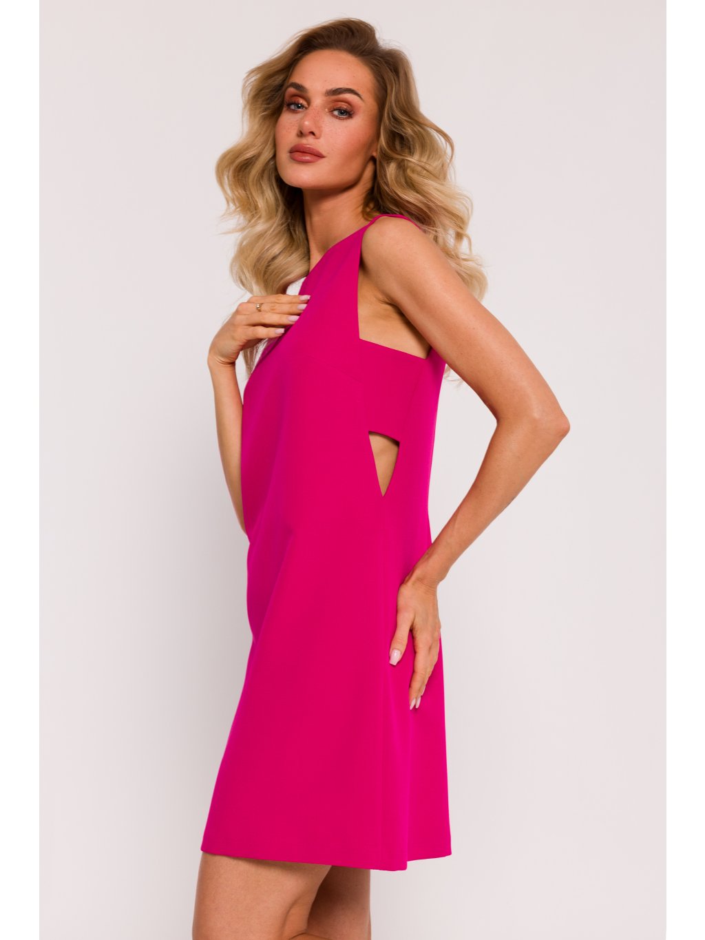 Představujeme jedinečné látkové šaty, jejichž návrh a výroba probíhaly s plným nasazením v Polsku. Tyto mini šaty bez rukávů jsou kombinací modernosti, pohodlí a minimalistického designu, vycházejícího z polského krejčovského řemesla. Áčkový střih šatů působí lehkým a ležérním dojmem a zároveň zvýrazňuje ženskou siluetu. Díky absenci rukávů jsou šaty ideální pro teplé dny a prezentují jemnost a decentnost. V podpaží umístěné průstřihy na bocích dodávají šatům prvek jedinečnosti a stylingu dodávají nádech modernosti. Skrytý zip na zádech usnadňuje oblékání a svlékání šatů a zároveň zachovává eleganci celkového vzhledu. Bez podšívky vypadají šaty ještě lehčeji a přirozeněji. Jedná se o oděv, který vám umožní užívat si volnost pohybu a zároveň zdůrazňuje ženskou jednoduchost a eleganci. Tyto šaty jsou nejen výrazem polského krejčovského řemesla, ale také módním manifestem minimalismu a funkčnosti. Tyto šaty, navržené a vyrobené v Polsku, jsou zárukou vysoké kvality zpracování a důrazu na detail, díky čemuž jsou ideální volbou pro mnoho různých příležitostí.
