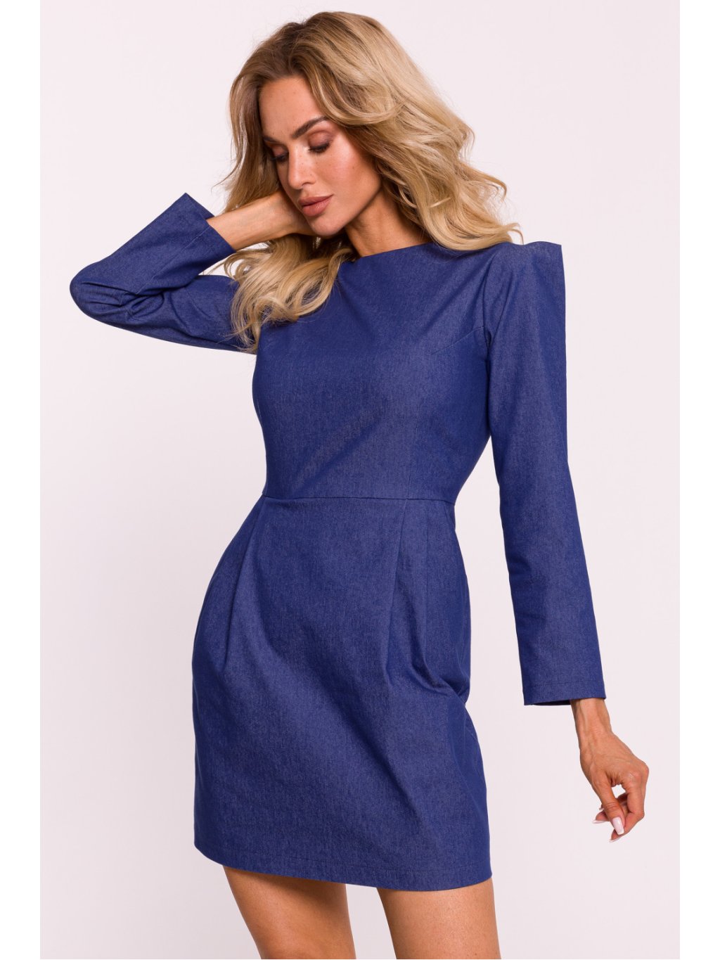 Minišaty vyrobené z bavlněné látky, ideální na každodenní a příležitostné příležitosti. Řezané v pase, zdůrazňují siluetu a dlouhé rukávy s ozdobnou skládací manžetou na rameni dodávají charakter. Na zádech šaty mají skrytý zip, co zajišťuje pohodlí nošení. Model bez podšívky, lehký a prodyšný. Navrženo a ušito v Polsku, zaručuje vysokou kvalitu zpracování.