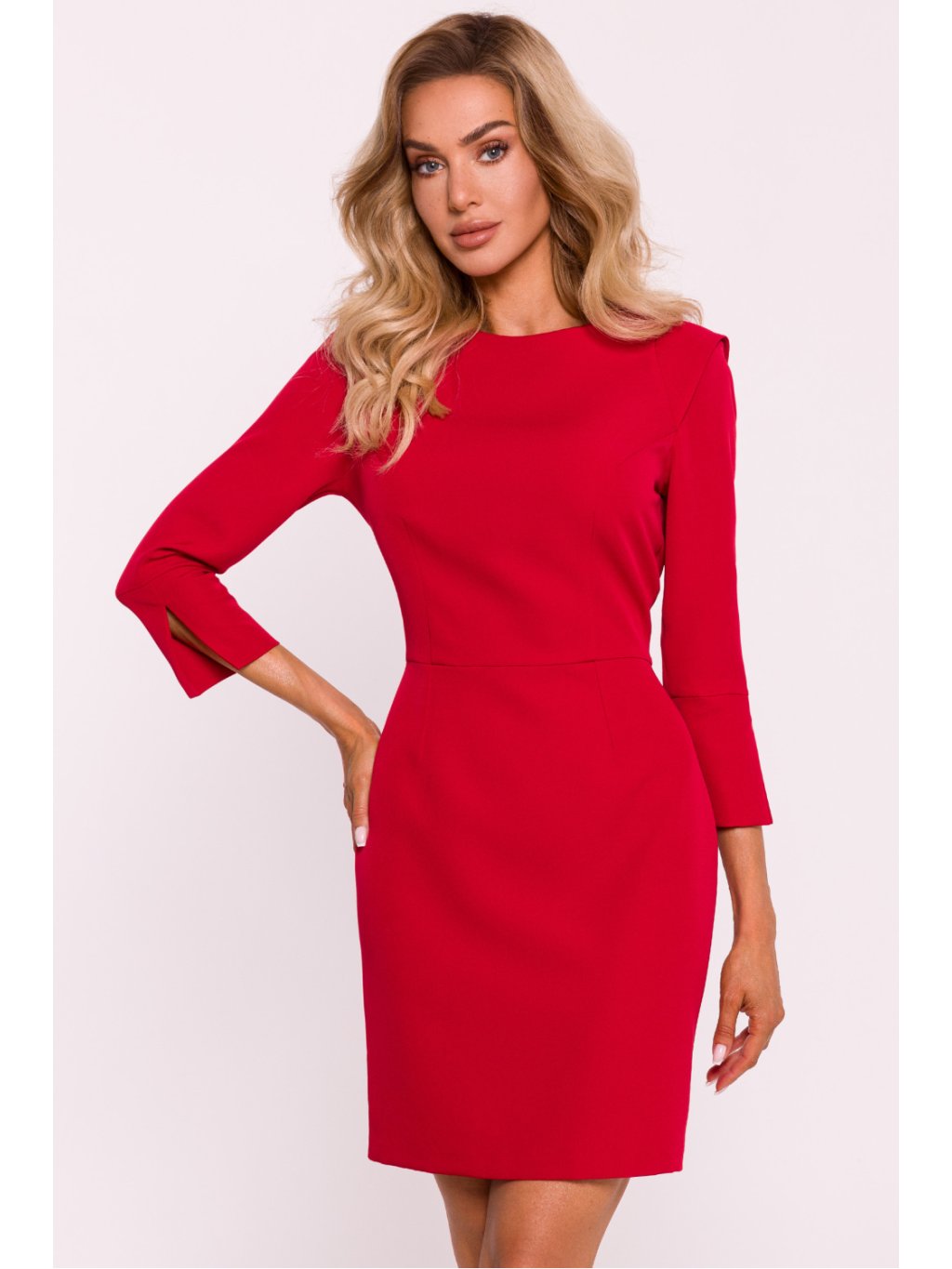 Mini šaty střižené v pase, vyrobené z vysoce kvalitní látky pro elegantní vzhled a pohodlné nošení. Rukávy v délce 7/8 mají ve spodní části jemné rozparky a ozdobnou vsadku na rameni, která dodává šatům jedinečný nádech. Šaty se vzadu zapínají na krytý zip a rozparek ve spodní části zajišťuje volnost pohybu. Model nemá podšívku, takže je lehčí a ideální pro různé příležitosti. Šaty byly navrženy a ušity v Polsku, což zaručuje nejvyšší kvalitu a smysl pro detail.